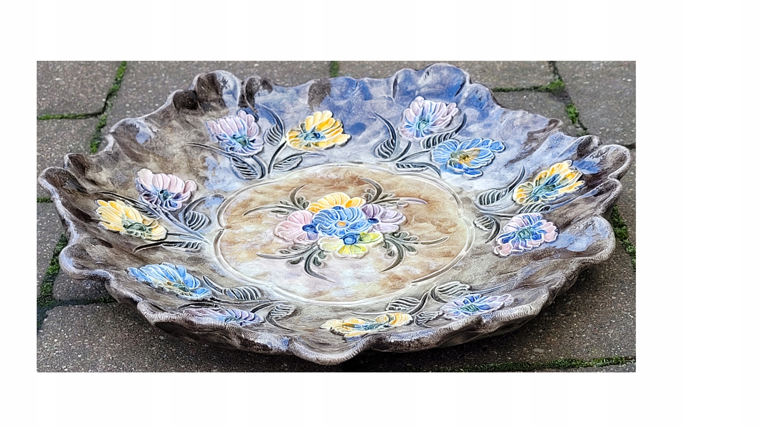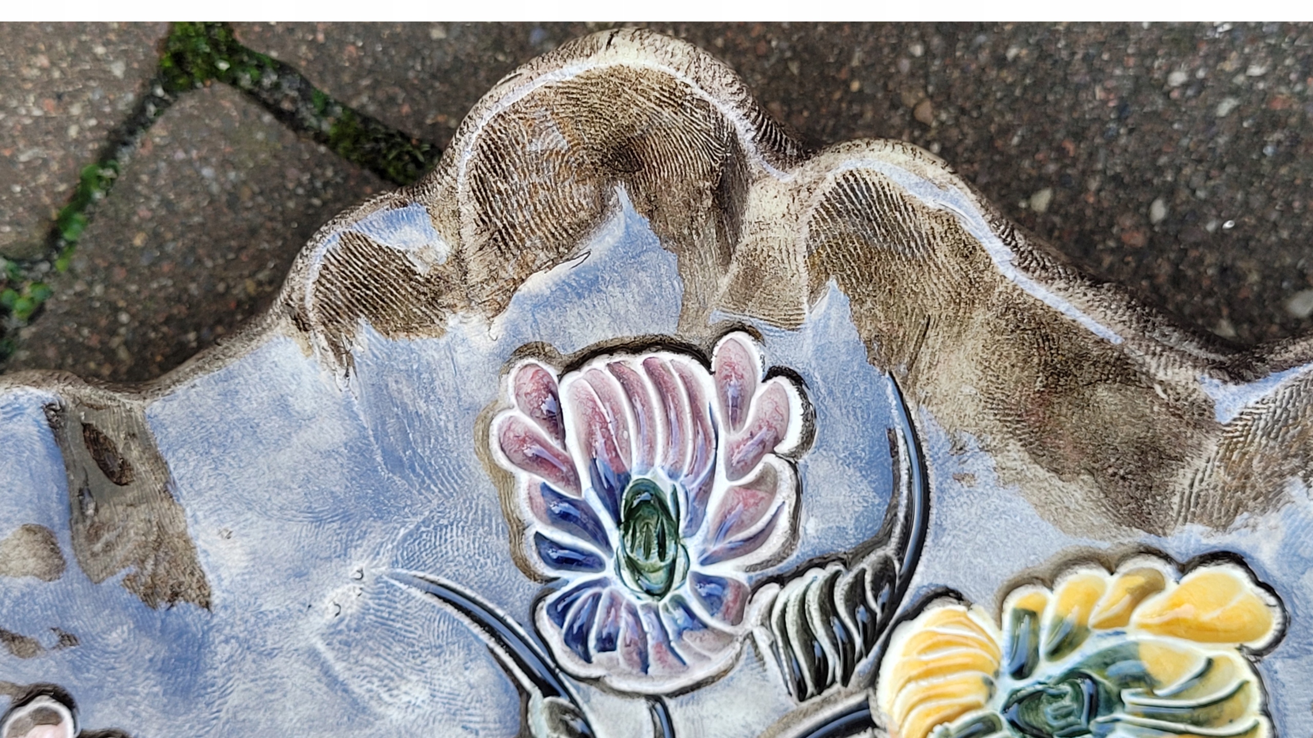 Підвоглазурна розписна кераміка, прикрашена опуклим барельєфом із зображенням квітів.