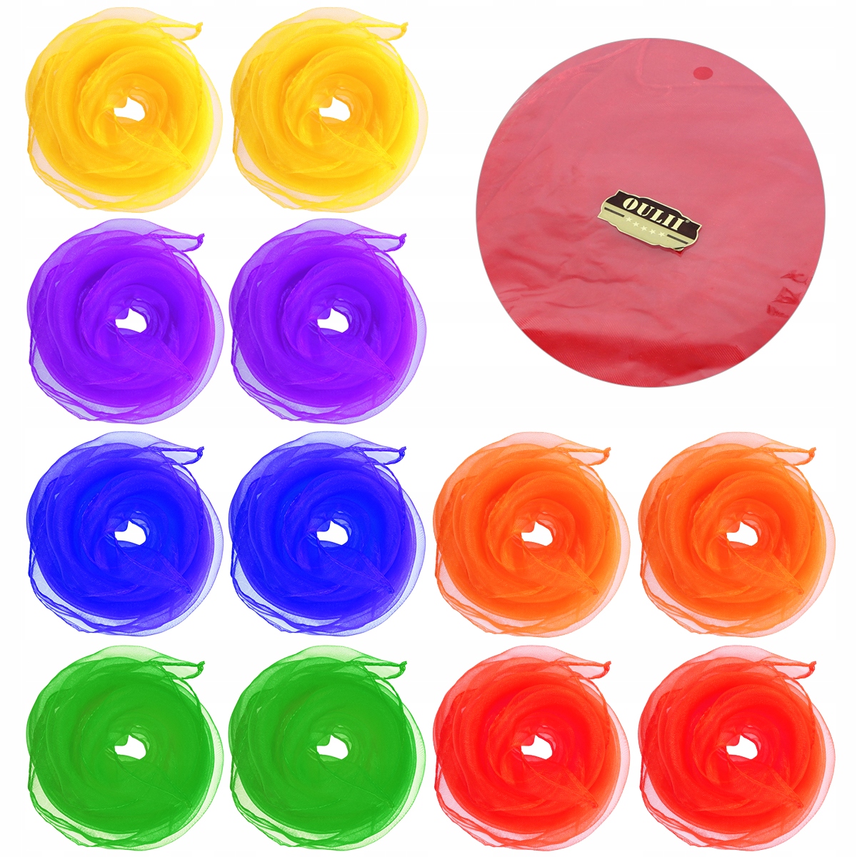 - Суб'єкт - це пачка з 12 штату простих і модних шарфів до жонглювання, виготовлені з шовкової тканини. Його можна використовувати як сценічні реквізити для танцювальних виступів. Підходить для дитячого садка та танцювальної групи для прикраси сумки, волосся або для використання із сонячним світлом. Вони також будуть приємним подарунком для ваших дітей чи друзів.