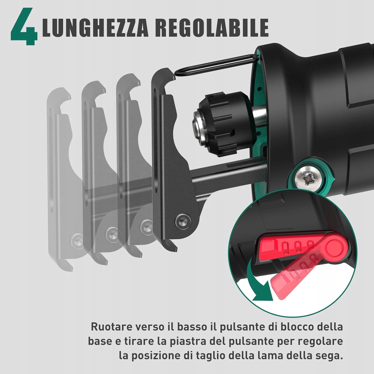 Ідеально для різання деревини та металу> щодо цього продукту 1 Встановлення лампи та швидке зарядне пристрої можуть продовжити термін експлуатації та час використання. Акумулятор може бути повністю заряджений протягом години. А індикатор акумулятора може показувати залишку акумулятора. 4 4 Шестірні Для регулювання глибини різання обертові ноги регулюють кут підтримки для різних робочих сцен. SKOK 22 мм, три методи різання, звичайний розріз, різання вставки, плоский розріз. Лезо можна вставити, коли замок розтягується. Після послаблення замка він може відскочити і автоматично застрягти. Поставте з дерев’яним лезом 2pcs та 2шт для різання металу.