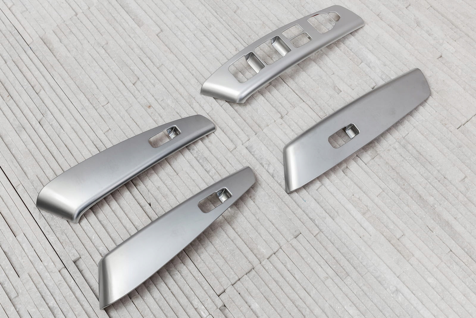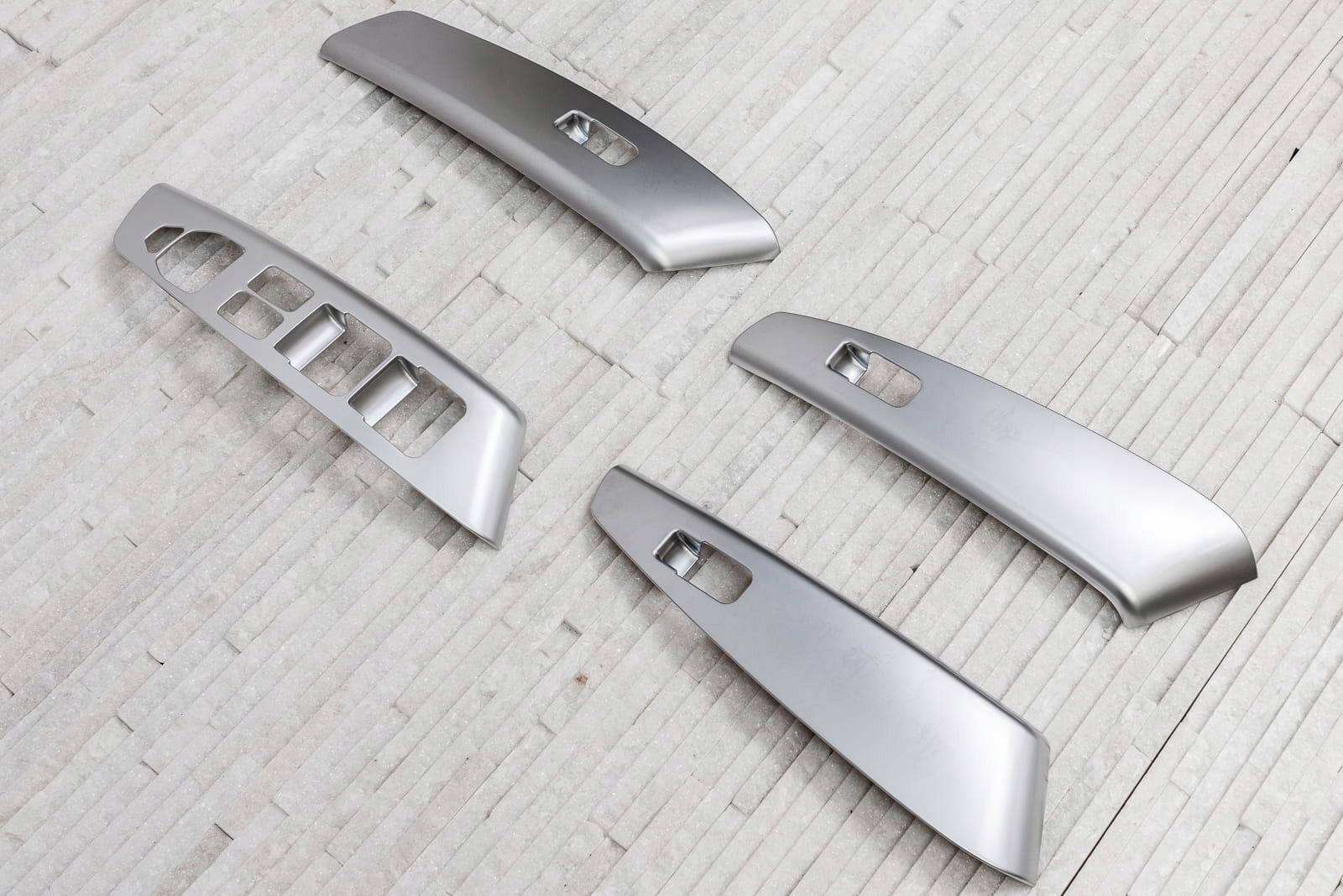 декоративна накладка робить скляні вимикачі, крім виконання своєї практичної функції, стають справжньою прикрасою кабіни автомобіля. Ідеально відповідна форма та атласна структура накладання роблять перемикачі, повні елегантності, стильної рами. Елементи були розроблені для того, щоб ідеально гармонізувати з іншими елементами внутрішньої обробки автомобіля, доповнюючи ефект стилю повного класу.