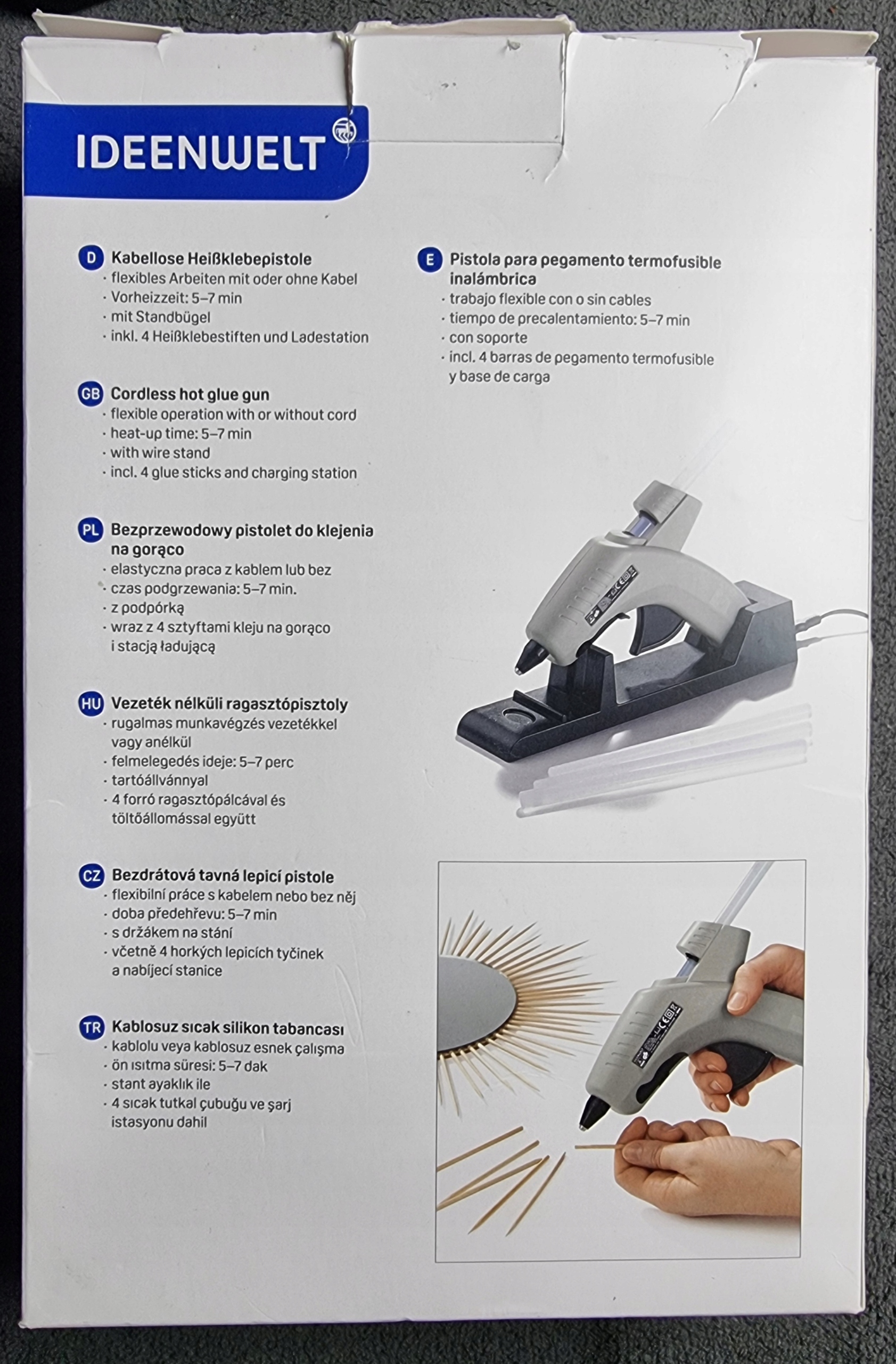 незалежно від того, чи йдеться про ручну роботу чи ремонт: Наш гарячий бездротовий пістолет Ideenwelt простий у використанні та забезпечує гнучку роботу завдяки бездротовому пристрою. Час нагріву-5-7 хвилин. Практична стійка полегшує відкладання гарячого склеювання.