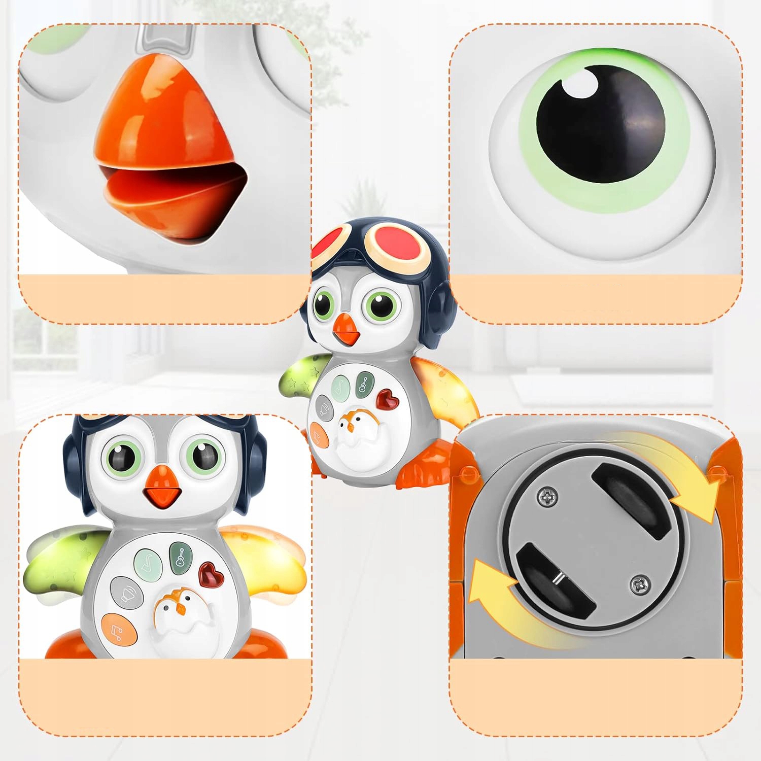 🐧 【Іграшки для навчання та розвитку дрібної моторики】: Весела музика та миготливі вогники привертають увагу малюків, дозволяючи їм із задоволенням ганятися і повзати. Діти взаємодіють з ним, допомагаючи розвивати дрібну моторику та координацію рук і очей, стимулюючи здатність дітей бачити, чути, торкатися, повзати та розуміти світ.