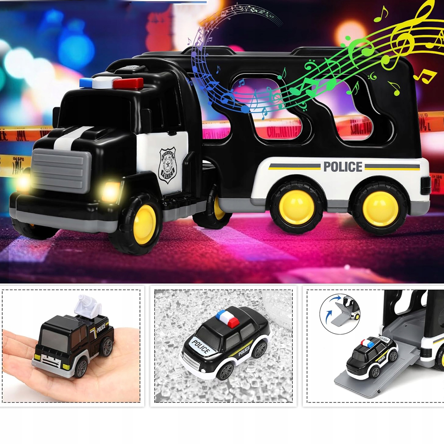 🚒, призначений для невеликих любителів поліції, містить більшу транспортну вантажівку, 6 маленьких автомобілів та 1 невеликий вертоліт.