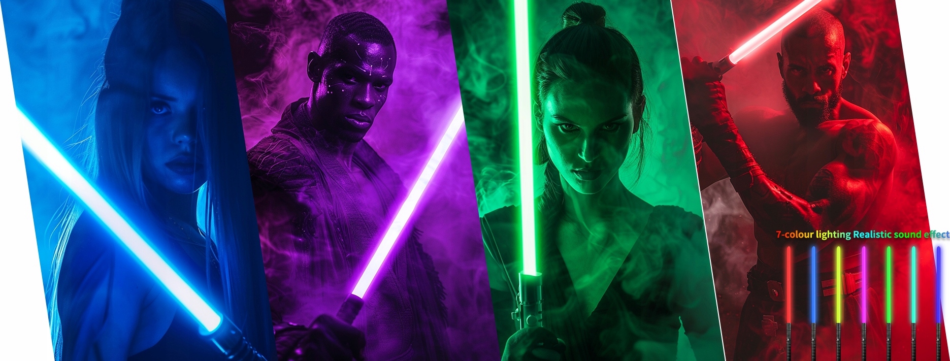 Світлові мечі можуть випромінювати 7 кольорів і симулювати рухи та бойові дії — легкі помахи та бойові звукові ефекти під час виконання різноманітних бойових рухів.