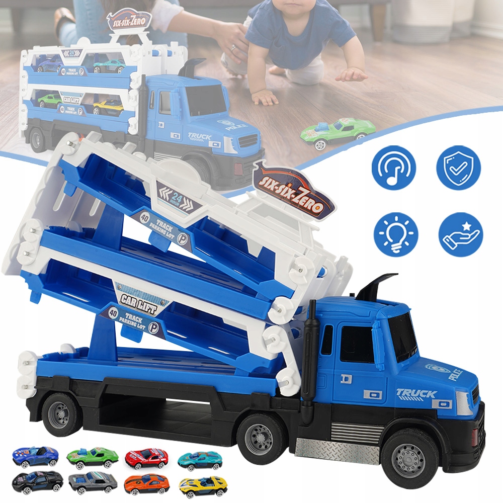 Вантажівка іграшок має складну та трансформовану доріжку, щоб діти могли розробити власне захоплююче гоночне середовище. Цей автомобільний транспорт має складну конструкцію, тож ви можете змагатись, куди б ви не їхали.