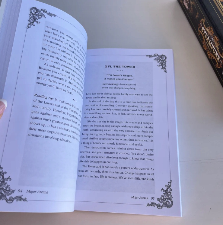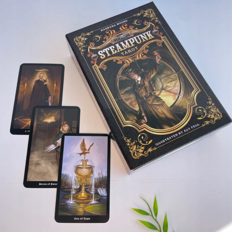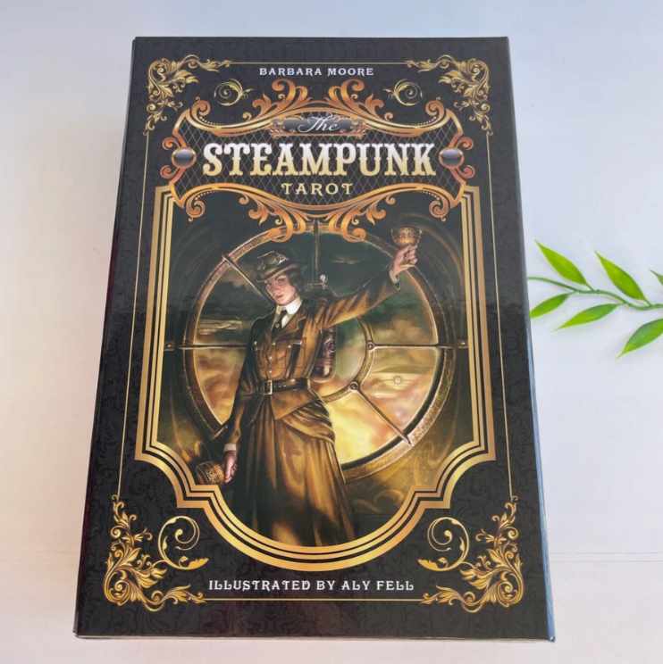 Колода Таро Стімпанк, створена відомим експертом із Таро Барбарою Мур і блискуче втілена в життя художницею Елі Фелл, пропонує погляд у майбутнє крізь призму минулого. Трансформуючи механіку традиції Райдера-Вейта, кожна вигадливо ілюстрована картка зображує приголомшливе поєднання людини й машини, природи й технологій, науки й алхімії, романтики й моди.
