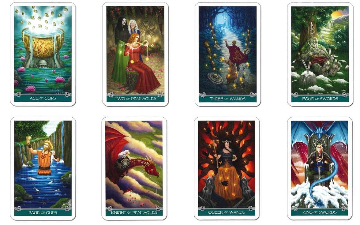 ✨Незважаючи на кельтський вплив, колода відповідає традиційній структурі Таро, яка складається з 78 карт, розділених на Старші та Молодші Аркани, кожен із яких має власне символічне значення.