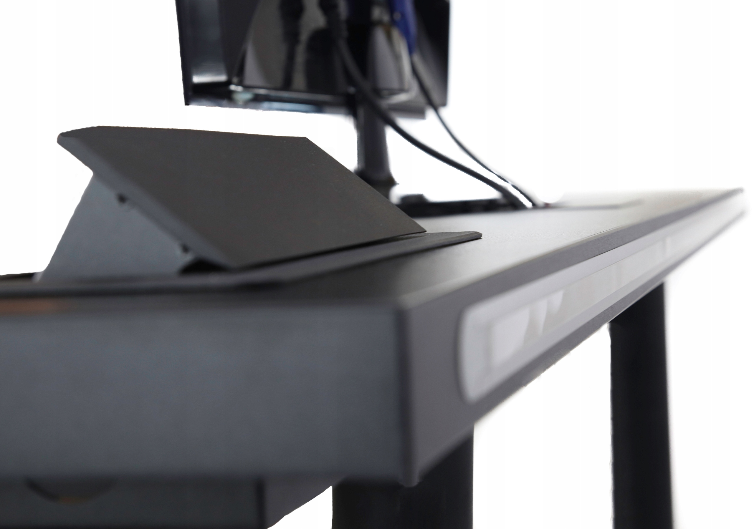 Стіл оснащений стільницею товщиною 28 мм, яка забезпечить вам надзвичайну стійкість обладнання навіть під дуже високим тиском і навіть при емоційному ударі! Стільниця виготовлена з ламінованої дошки, розкроєної та шпонованої на професійних верстатах, та відрізняється довговічністю та високою стійкістю до будь-яких забруднень та подряпин. Вам не потрібно турбуватися про його зовнішній вигляд – він завжди виглядатиме на 10/10!