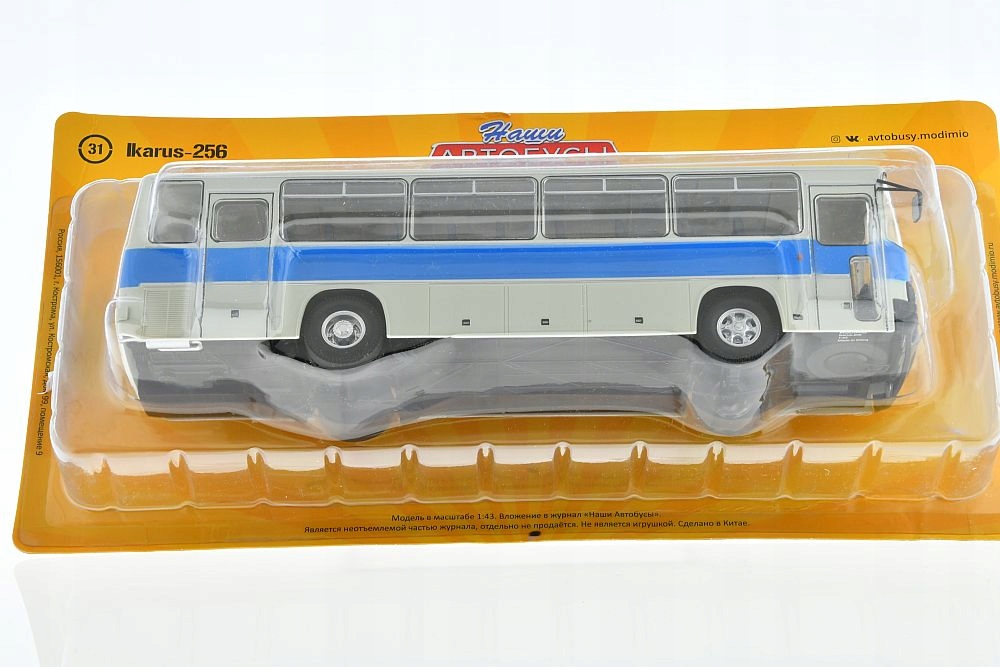 Колекційна металева модель автомобіля Ікарус 256 Ікарус-256 1988 Білий Синій Автобус Автобус СРСР НДР РДА УРСС Радянська Росія Угорщина Росія, Угорщина в масштабі 1/43 виробництва відомої, цінної та авторитетної компанії Modimio Collections b>