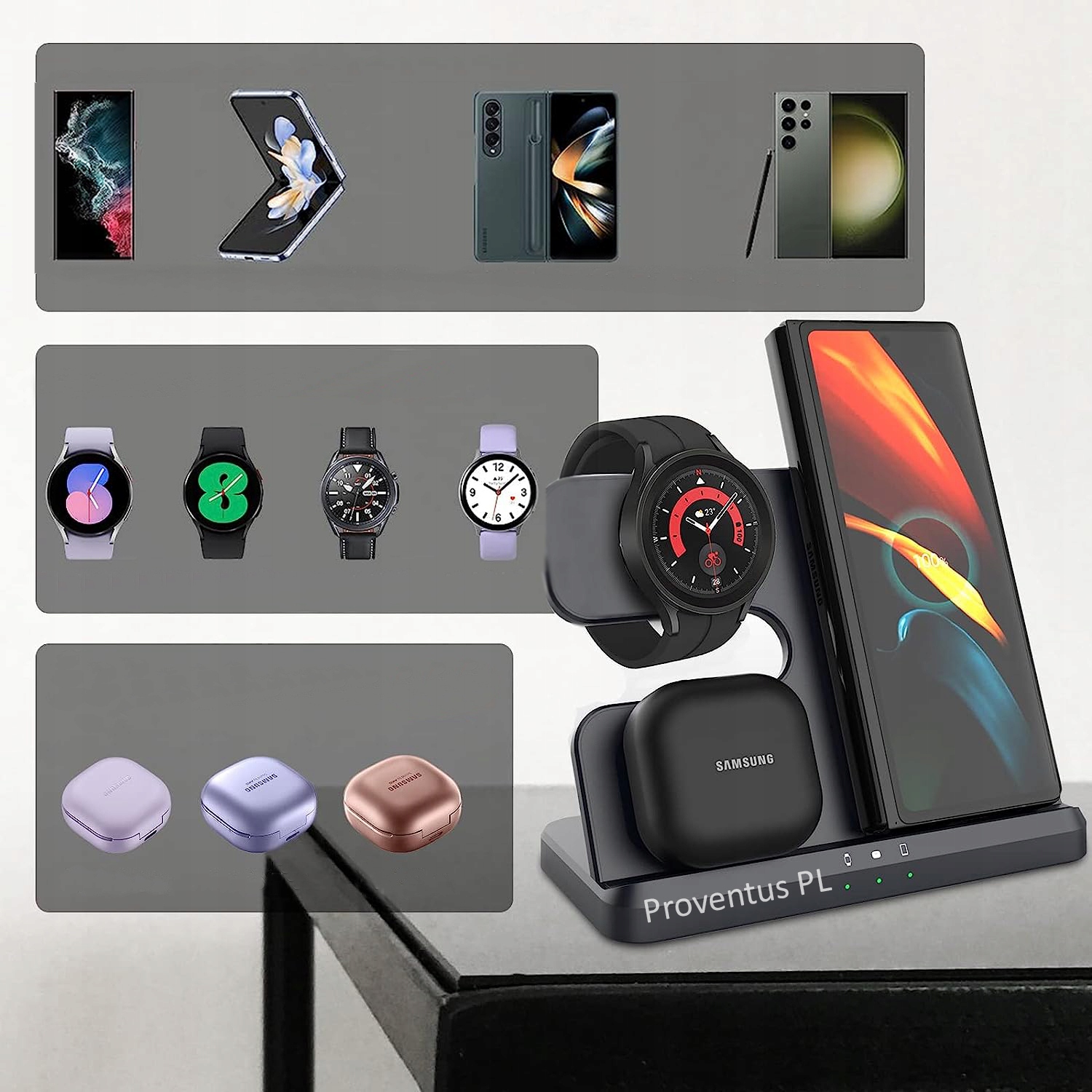 Бездротовий зарядний пристрій спеціально сумісний із мобільними телефонами Samsung, годинником і навушниками одночасно.
