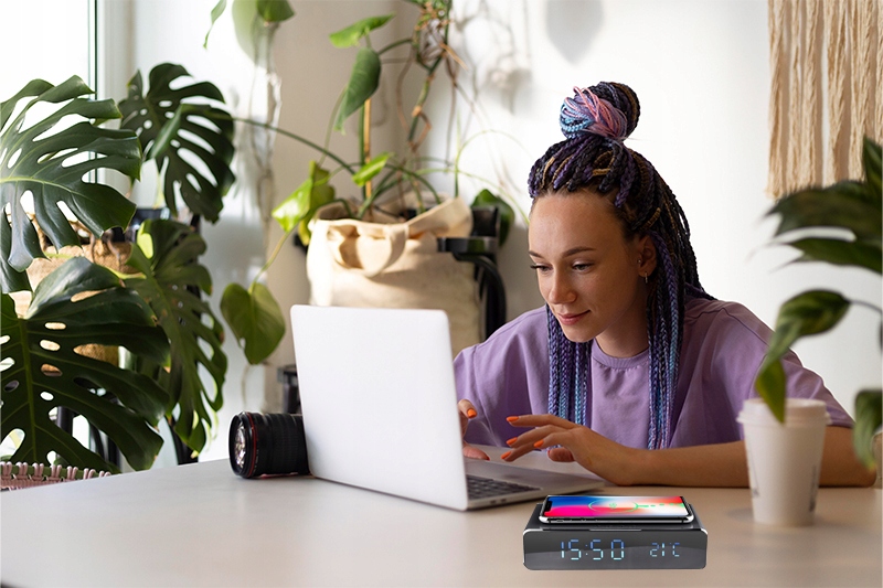 Індуктивний зарядний пристрій БУДИЛЬНИК Електронний світлодіодний годинник Безшумний цифровий термометр