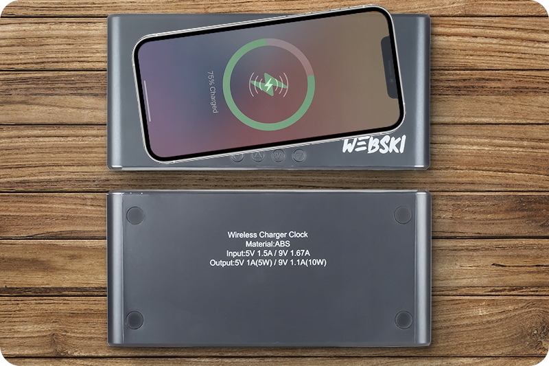🕗 Цифровий годинник WEBSKI® 5-в-1 з будильником, термометром, дисплеєм дати та вбудованим індуктивним зарядним пристроєм