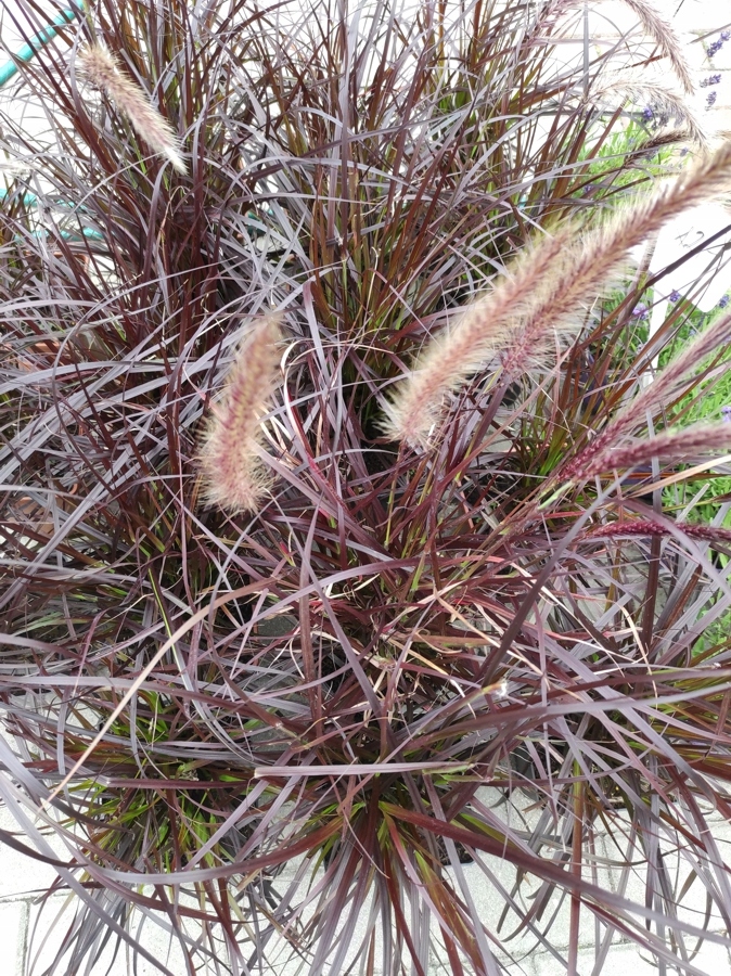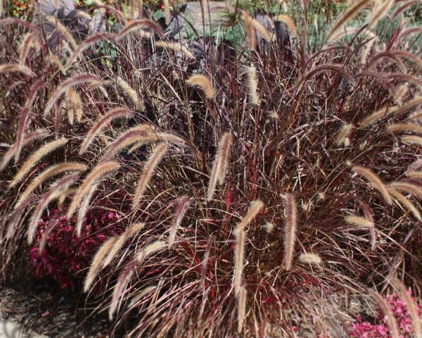 Чашка трава з висотою 90-120 см під час цвітіння. Прекрасні суцвіття, довгі пухнасті. Це цвіте з липня до кінця осені. Фіолетові вузькі листя з фіолетовим кольором.