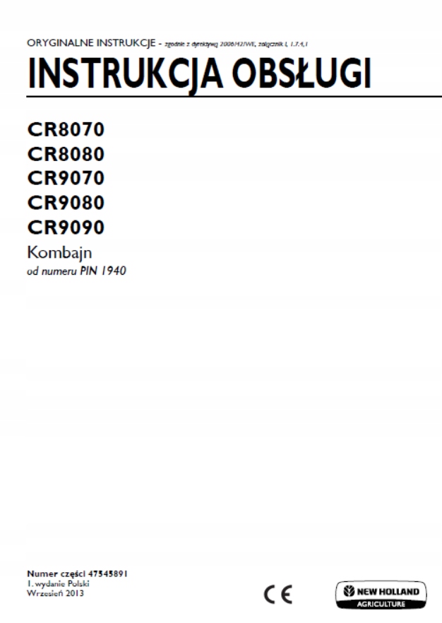 INSTRUKCJA OBSŁUGI CR8070 CR8080 CR9070 CR9080 NEW HOLLAND