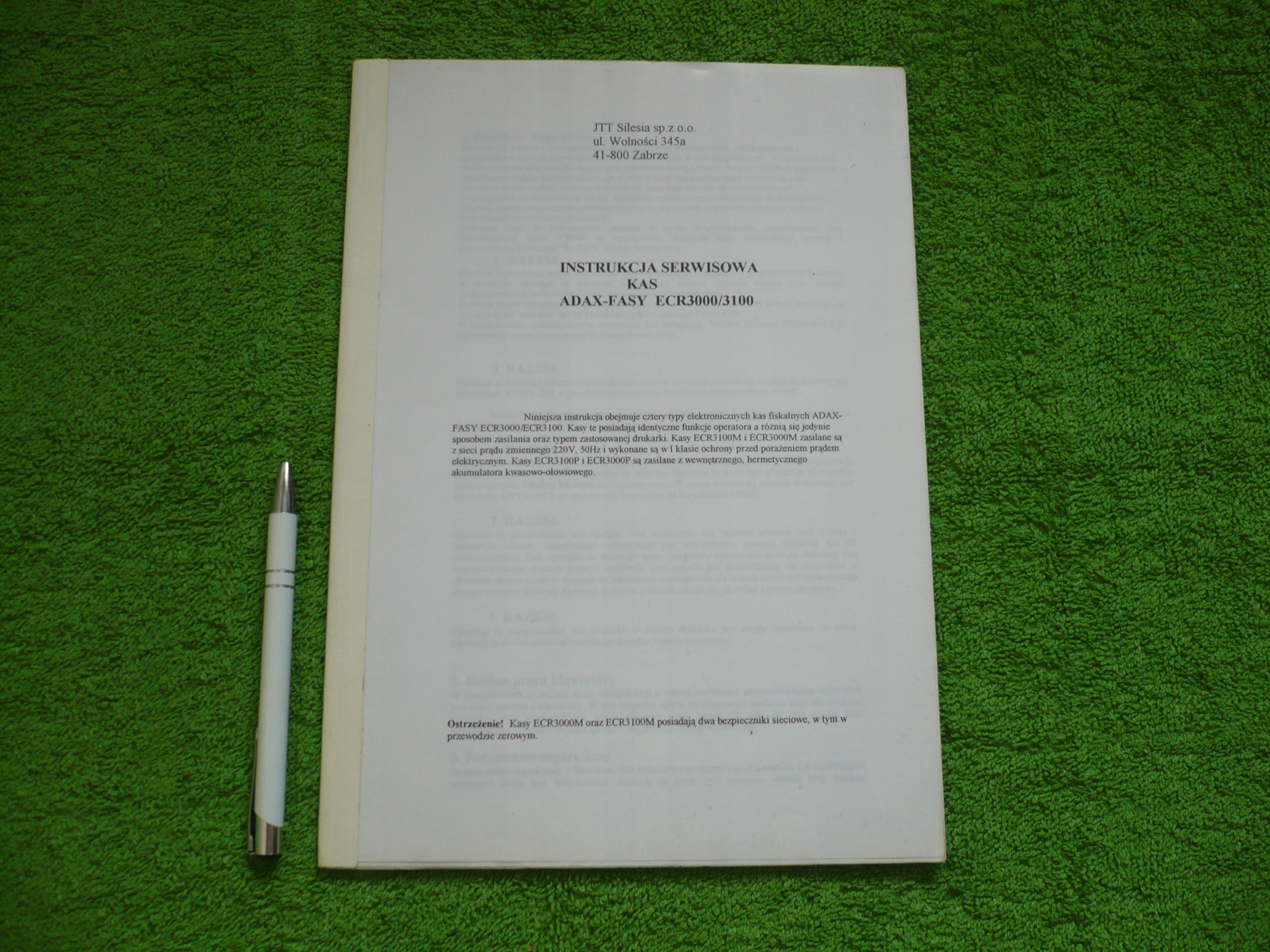 INSTRUKCJA SERWISOWA KAS ADAX-FASY ECR3000/3100