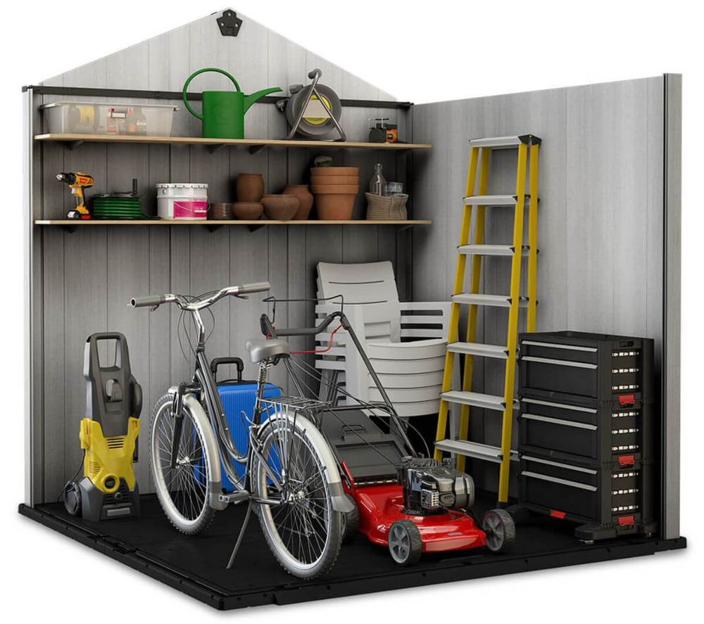 Keter Garden House оснащений спеціальними отворами вентиляції , які забезпечують адекватну циркуляцію повітря . Завдяки цьому, волога не накопичується всередині будинку, що запобігає цвілі та корозії інструментів та садового обладнання. Хороша вентиляція робить будинок залишається сухим навіть у дощові дні, що збільшує довговічність збережених предметів і забезпечує тривалий захист від руйнування.