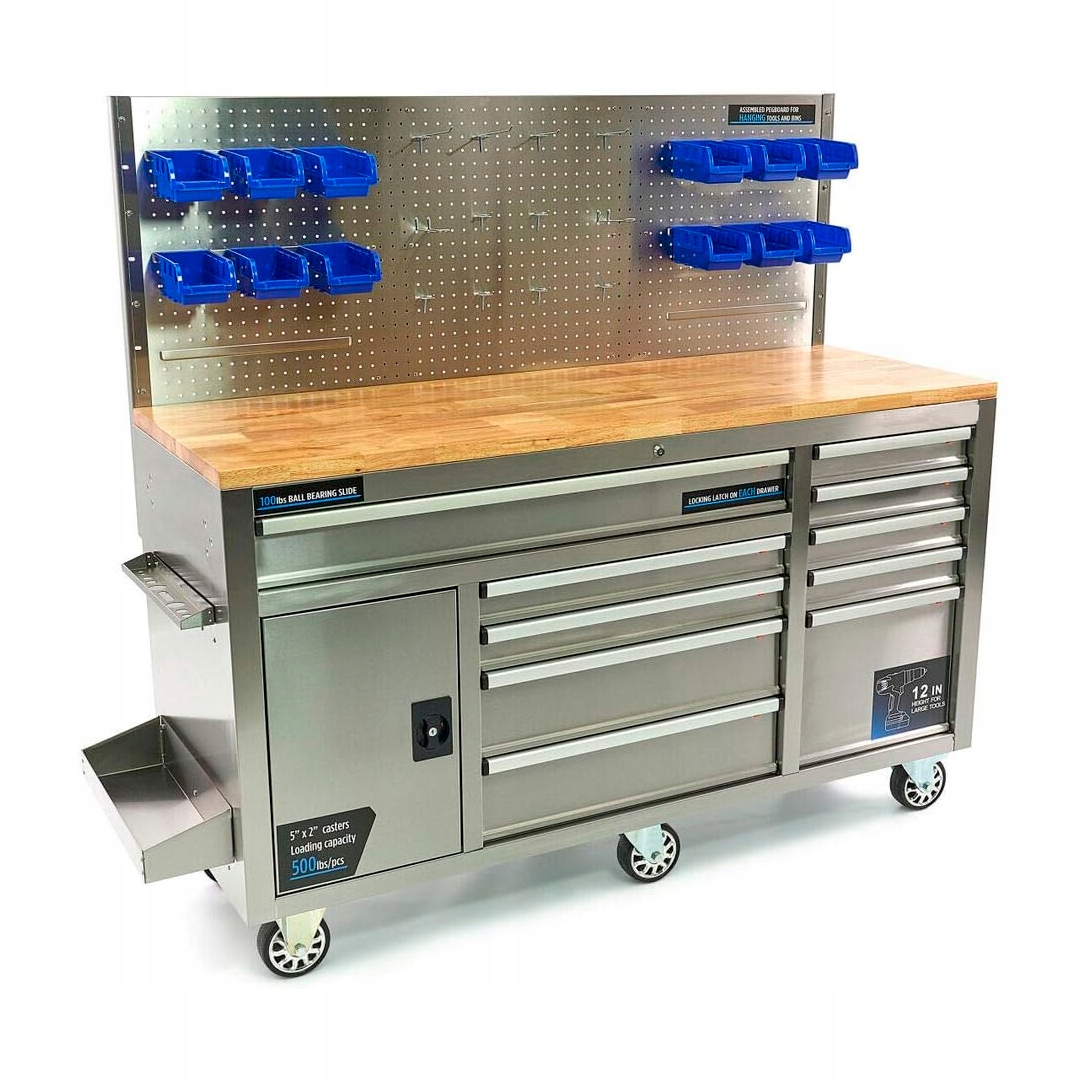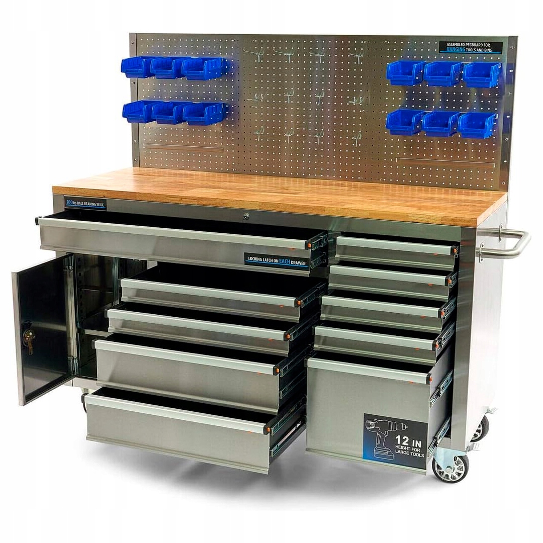 Професійний інструмент з нержавіючої сталі тролейбус Kraft Müller 62 "є ідеальним рішенням для організації робочого простору в майстернях та гаражах. Оснащений 10 ящиками, дверима та суцільною дерев’яною роботою, ця коляска поєднує практичність, мобільність та довговічність.