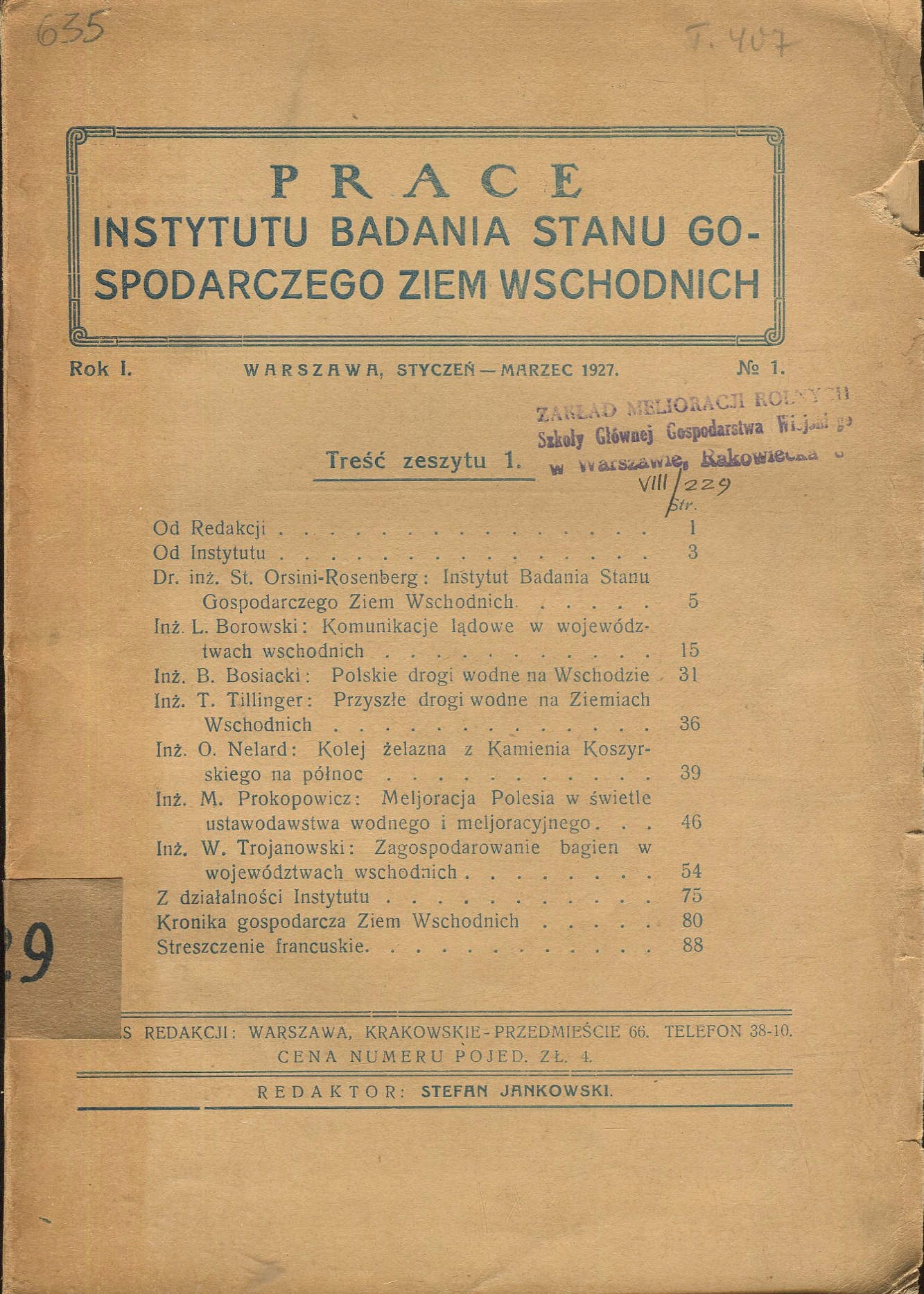 Instytut Badania Stanu Gospodarczego Ziem Wschodnich 1/1927 kresy Polesie