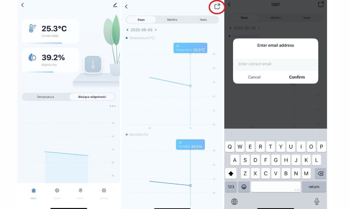 Контроль здійснюється за допомогою безкоштовного застосування Tuya або Smart Life , яке підтримує натискання сповіщень - автоматично інформує вас про перевищення встановленої температури або вологості. Датчик також дозволяє генерувати та надсилати звіт із вимірюваннями у форматі Excel (.xlsx) безпосередньо на вашу електронну адресу.