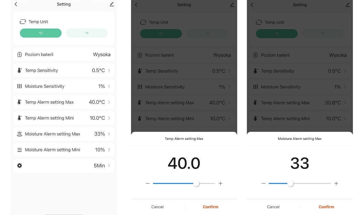 Датчик дозволяєвстановлювати сигнали вологості в межах точного діапазону від 0 до 100%, дозволяючи регулювати рівень, на якому ґрунт потребує дії. Крім того, ви також можете встановити сповіщення про температуру в діапазоні -10°C до 60°C, що особливо корисно для моніторингу умов чутливих рослин, особливо під час періоди холоду і спеки.