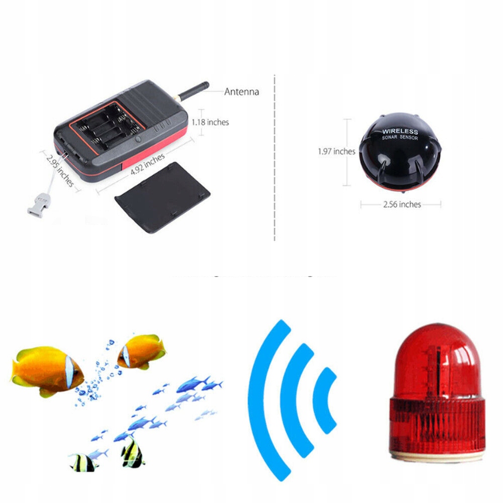 -використання до озера, річки, моря та інших риболовних районів. Він працює від 4 батарейних батарей AAA (акумулятор не включається). Датчик можна зарядити за зарядним кабелем.