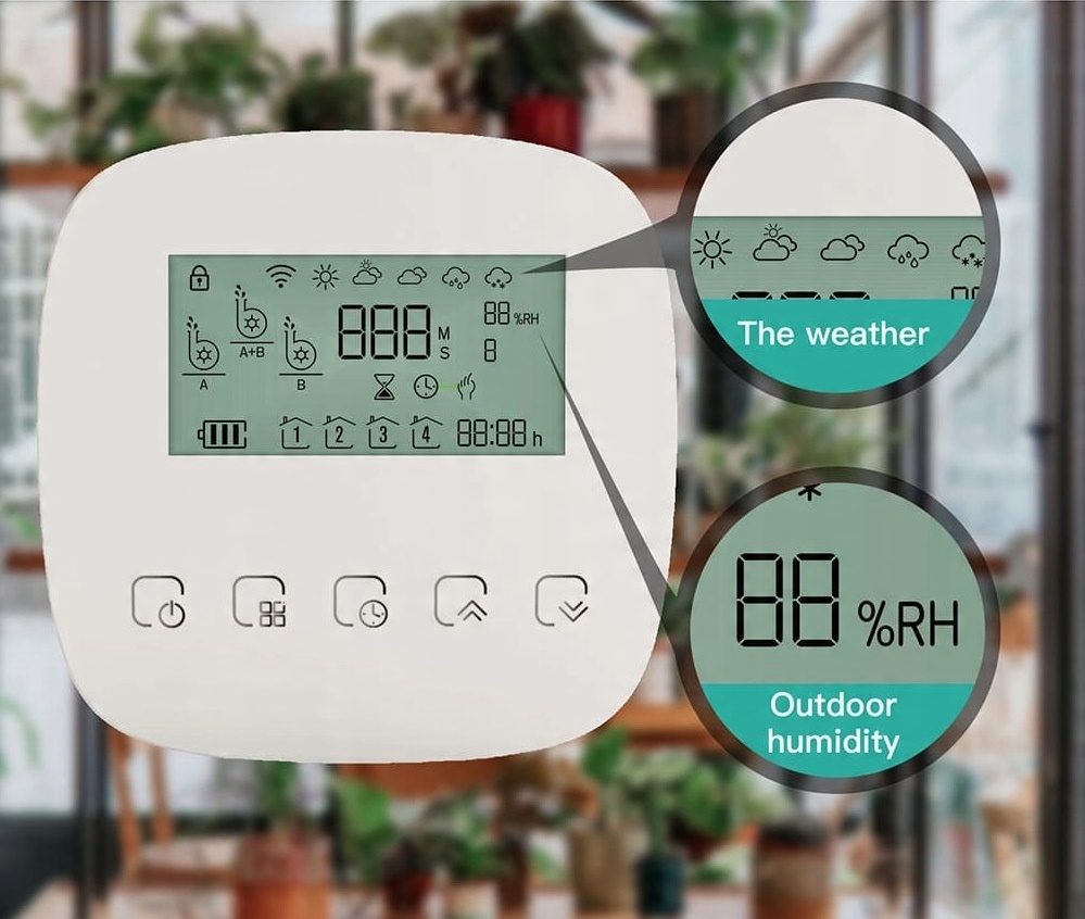 Синхронізація погоди в місці проживання разом з контролером додатково впливає на точний підбір частоти та інтенсивності поливу до умов.