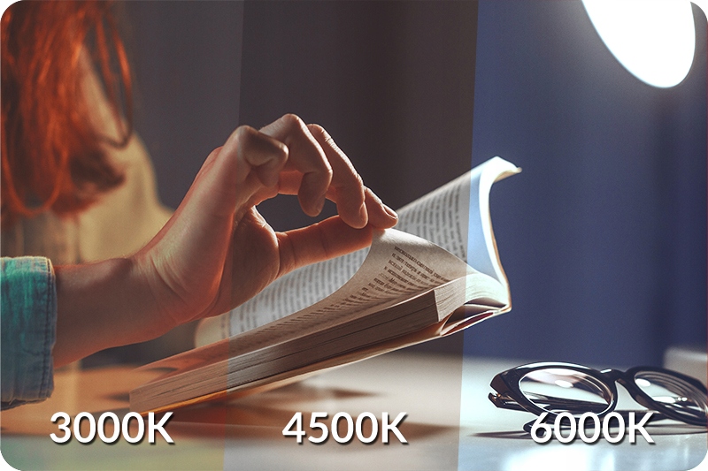 Залежно від від ваших потреб ви можете встановити барвисте світло до надати настрій кімнатим або використовувати біле світло, встановлюючи його температуру. Тепле біле світло ідеально підходить для вечірнього читання , нейтральне світло під час щоденного функціонування , а холод (пробудження), наприклад, під час навчання.