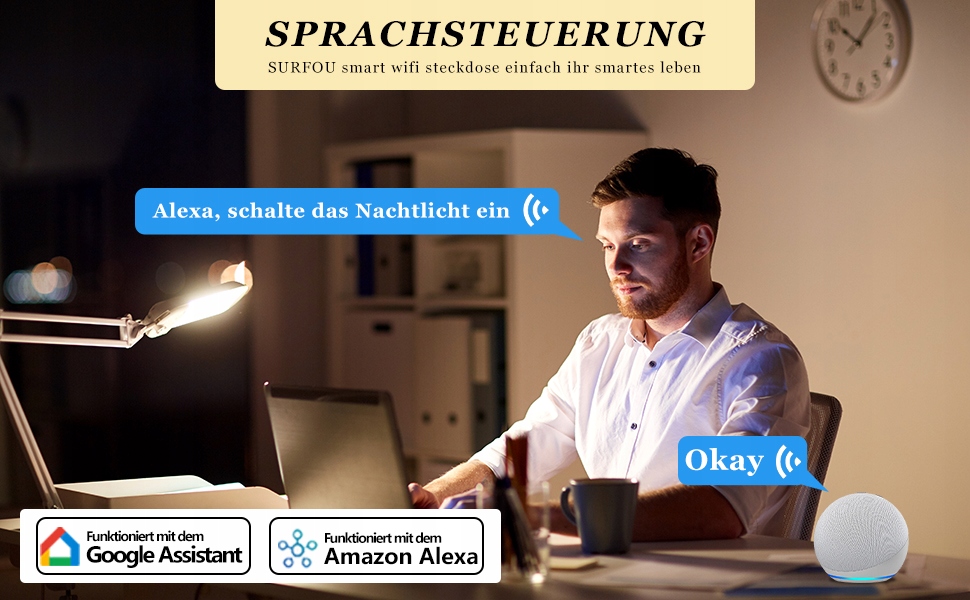 surfou Zigbee Alexa Socket - Голосовий контроль за допомогою Alex та Google Assistant, Wi -Fi Socket 2,4 ГГц 16 A