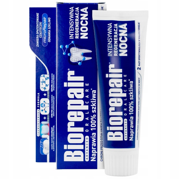 під час сну в устах у наших рот, існують різні метаболічні дії бактерій та кислот, які вони демінералізують і послаблюють емалі. Також вночі потік слини зменшується, і ми стискаємо зуби. Все це негативно впливає на гігієну ротової порожнини. Тому нічна паста Biorepair є ідеальним рішенням у цій ситуації.