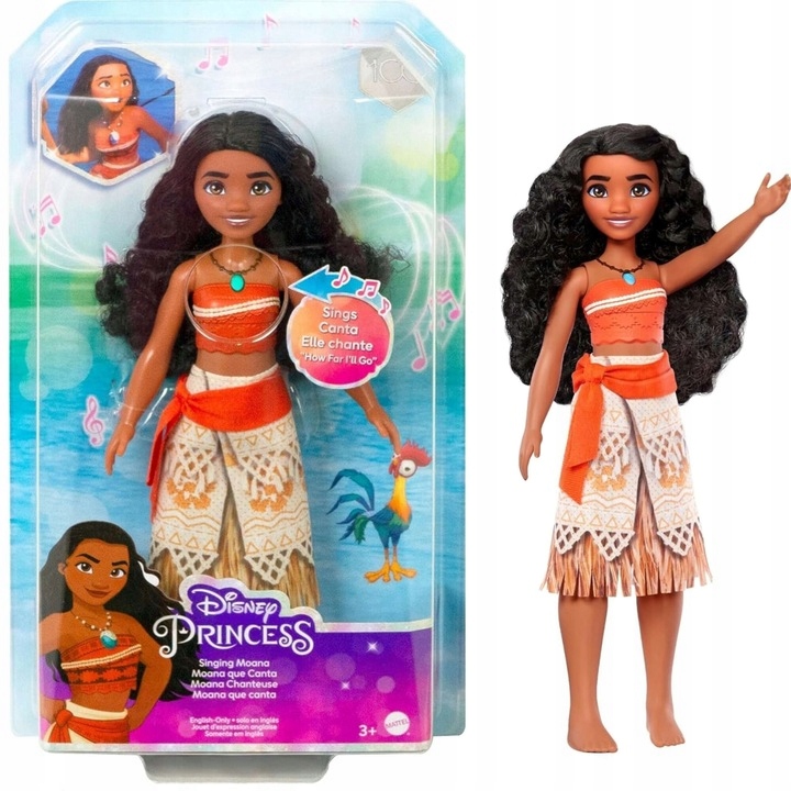 Моана лялька носить себе Характерне вбрання і довге, хвилясте волосся, що полегшує укладку! Вболівальники можуть зібрати всі співочі ляльки Дісней та переживати дивовижну музичну пригоду!