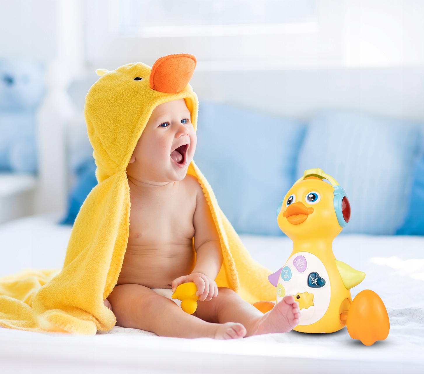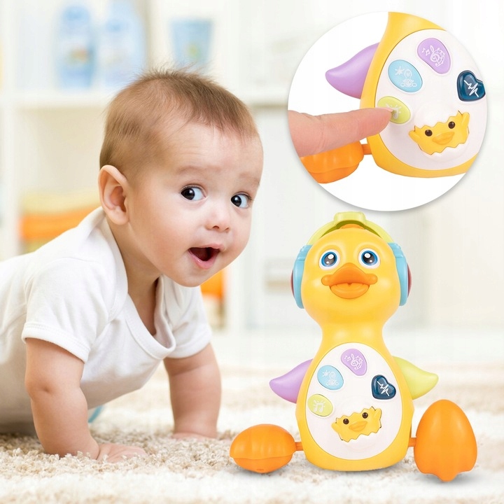 Іграшка - це не лише ідеальна форма проведення часу, але в той же час розвиває почуття та навички малюка . За допомогою нашої качки малюк може вдосконалити рухові навички, розвивати координацію ручної книги , а також здійснювати відчуття дотику, зору чи слуху , чудово розважаючись.