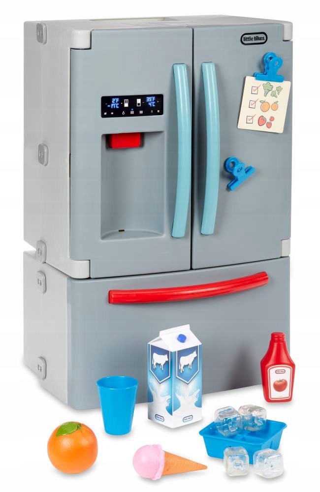 Діти граються з набором Little Tikes First Fridge і готують їжу так само, як їхні батьки. Сучасний набір має багато функцій: диспенсер для льоду, подвійні двері, окремий ящик для морозилки, внутрішнє освітлення. Крім того, холодильник видає реалістичні звуки ллється води, видає колотий лід і багато іншого, дозволяючи дітям годинами розважатися по-дорослому. Наслідування прикладу батьків у приготуванні їжі та інших домашніх справах допомагає дітям розвинути почуття відповідальності за домашнє господарство, що є важливою частиною соціального та емоційного розвитку. Перший холодильник Little Tikes легко зібрати. Ви можете легко розмістити всі 11 аксесуарів усередині холодильника. Діти також можуть повісити списки покупок на дверцята холодильника. Вони також можуть прикрасити своїми роботами холодильник. Заохочуйте своїх дітей до творчих ігор із набором Little Tikes First Fridge!