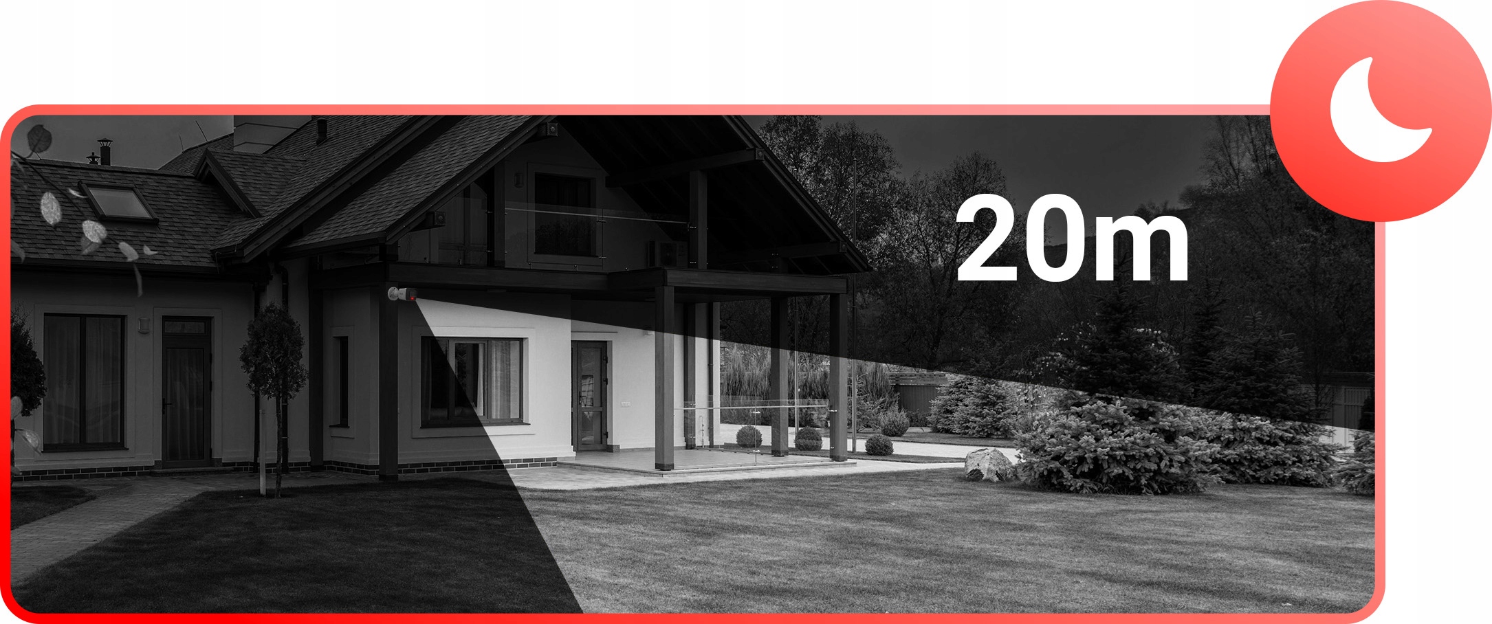 , адаптований до роботи у будь -яких умовах освітлення з видимістю до 20 м навіть у загальній темряві. Крім того, датчик дня/ночі перемикається режим зору автоматично на основі кількості світла, що досягає об'єктива.