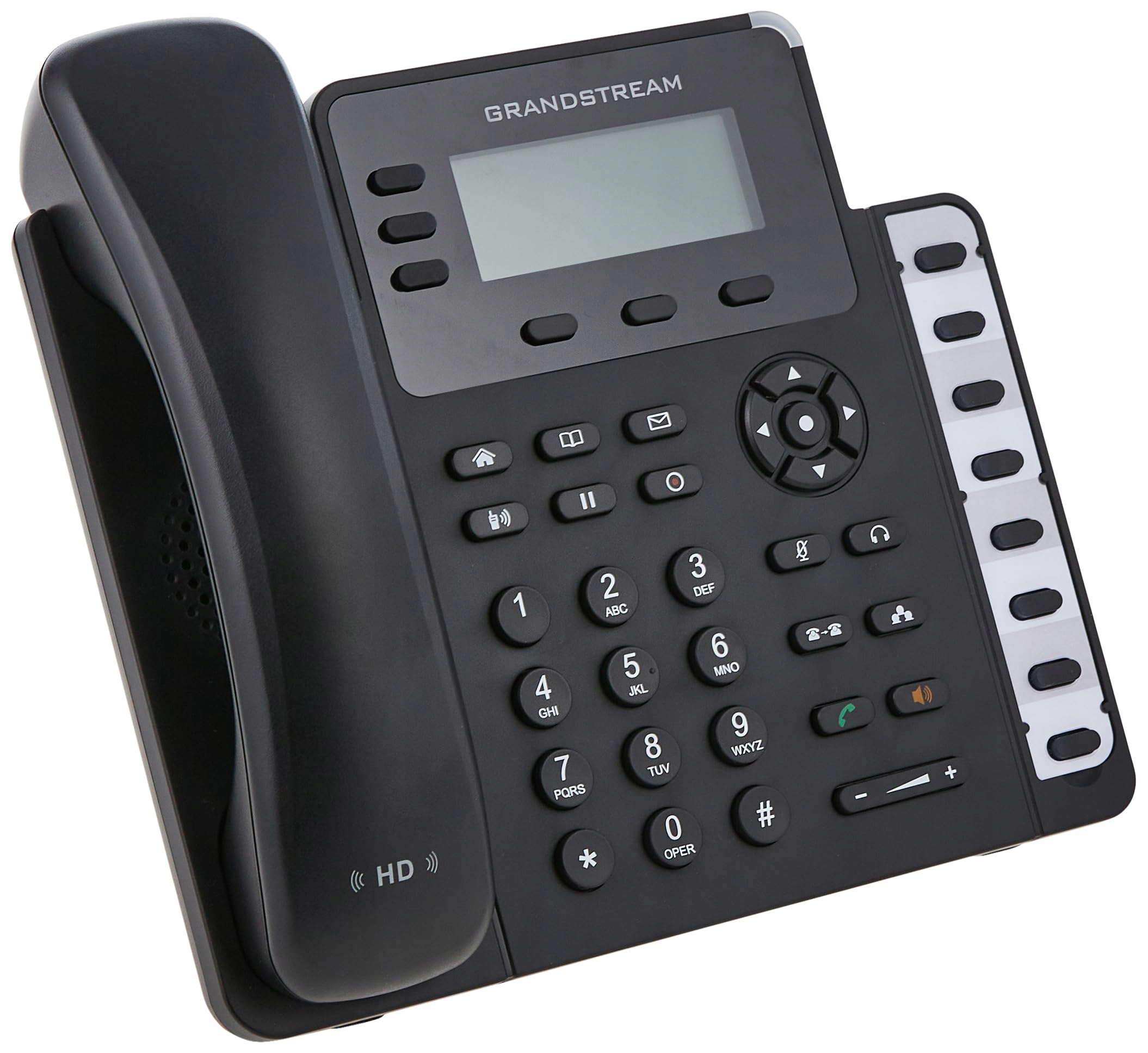 GXP1630 — це стандартний IP-телефон Grandstream для малого бізнесу. Модель працює під керуванням системи на базі Linux. Він оснащений підтримкою трьох ліній, трьома програмованими клавішами XML, 8 програмованими клавішами BLF, конференц-дзвінками для 4 осіб. Зручну роботу забезпечує РК-екран з роздільною здатністю 132 х 64 пікселів і відмінною якістю зображення. GXP1630 оснащений двома мережевими портами 10/100/1000 Мбіт/с з PoE. Завдяки таким додатковим функціям, як аудіо високої чіткості, підтримка кількох мов інтерфейсу (включно з польською), EHS (електронний перемикач гачок) для гарнітур Plantronics і очікування виклику, GXP1630 є високоякісним, простим у використанні і зручним для користувача та надійний IP-телефон.