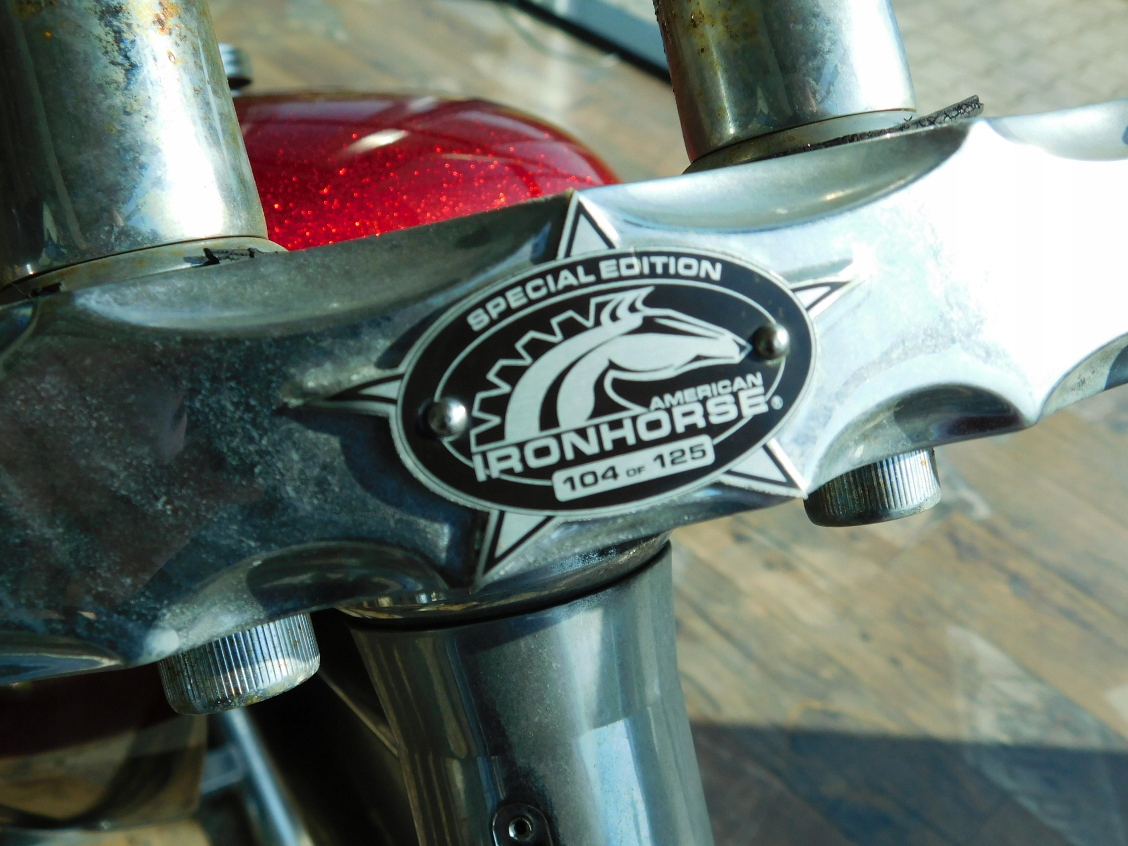 Я продаватиму оригінальний кадр (з кількома елементами) Залізному коні з обмеженого видання на 10 -ту річницю американського Ironhorse Texas Chopper. Only 125 pcs were produced, this frame has No. 104. Frame adapted to the S&S 124 "engine (2032 cm3).
