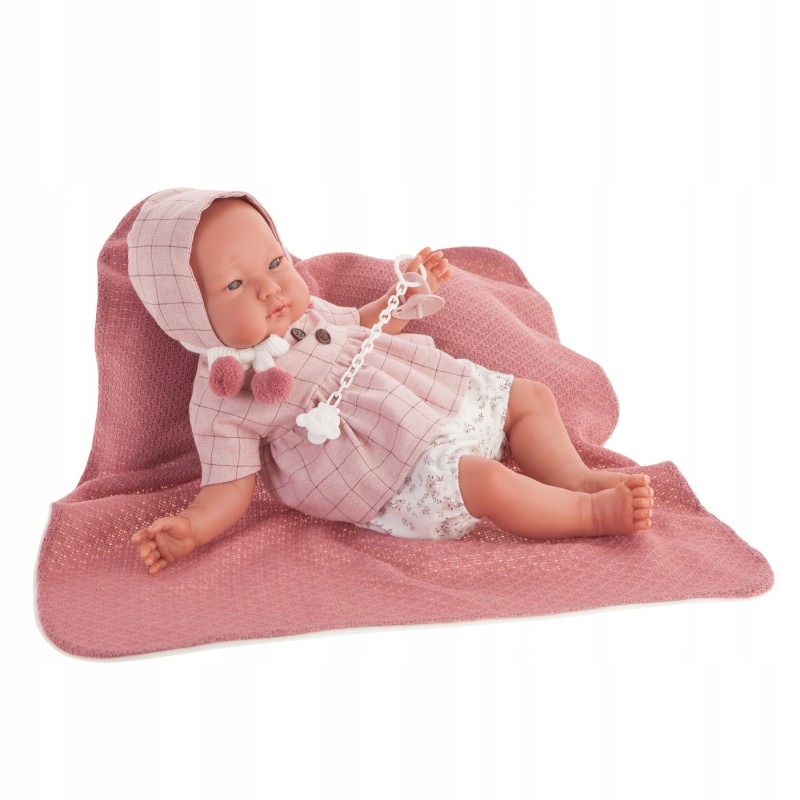 Новонароджена дитина одягнена в ошатний комплект одягу. Комплект складається з рожевого платтявшотландку та< b >дуті шорти на гумці. Білі трусики прикрашені дрібним квітковим візерунком. Додатковим декоративним елементом вбрання є двагудзикикоричневого кольору, пришиті посередині одягу. Чарівна рожева сукня застібається ззаду на липучку. Стайлінг доповнить плетена рожеваковдраізав'язана шапочка, які ідеально підійдуть до всього стилю. Крім того, палітурка виконана збілого трикотажуприкрашеногоплюшевими помпонами. Ви точно можете використовувати чохол під час прогулянки вхолодніші дні. Комплектація Комплект одягу b> зорганічної бавовни. Увесь одяг дівчинки можназняти, що зробить одягання вашої дитини приємнішим. Одягання ляльки також дозволить дитині отримати більше практики /b> у повсякденних завданнях і стимулюватиме розвиток координації та маніпуляції руками. Доглядаючи за своїм малюком, дитина може відчувати себе справжньою мамою, розвиваючи тим самим емоційну сферу.