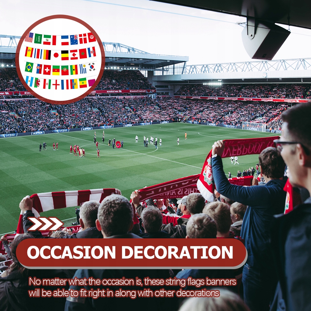 Хочете відсвяткувати щось унікальне та цікаве з нагоди футбольних кубків? Чудовим вибором для вас стане підвісний прапорець. Виготовлений з високоякісного поліефірного матеріалу, легкий і легкий у транспортуванні. Використовувати виріб можна для декорування стін, вікон або дверей. Підходить для тематичної вечірки.