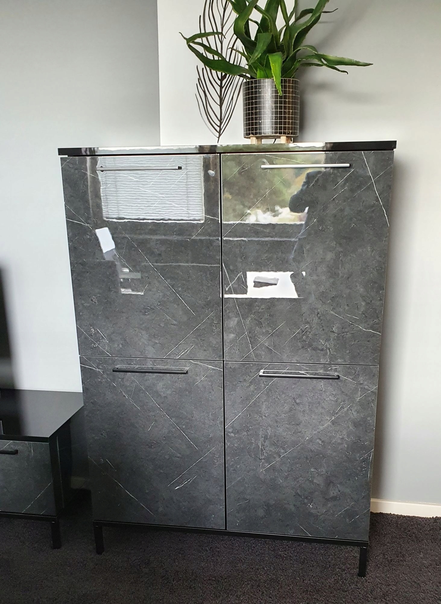 Італійський високий комод Mango, 4-дверний, глянцевий антрацитовий мармур, Marmo