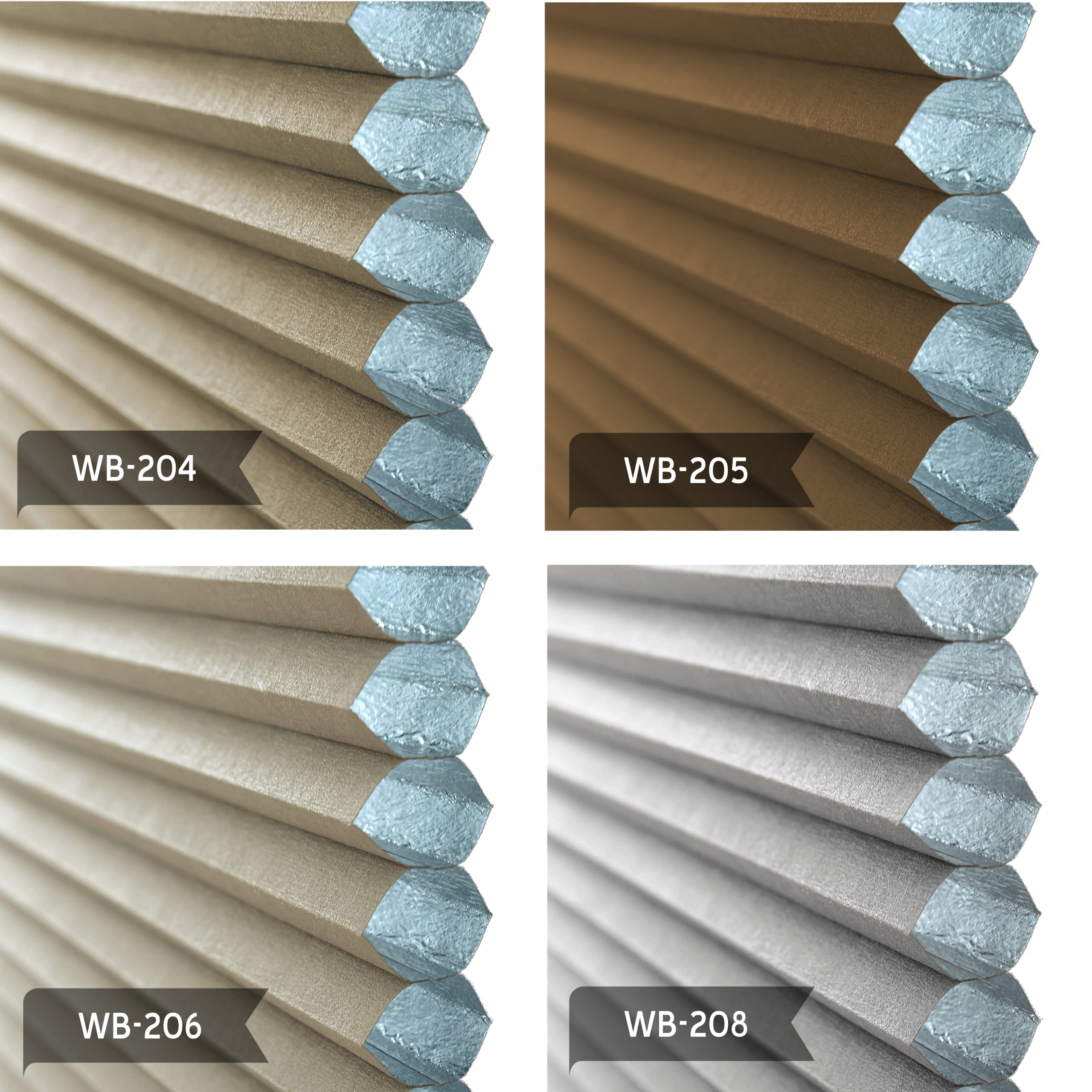 Тканина «Honeycomb with Thermo Coating», яку ми використовуємо, характеризується ступенем затемнення. 100 %, а також має теплове покриття, яке відбиває тепло сонячного світла.