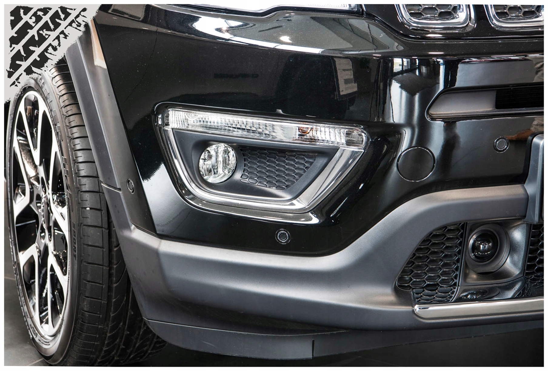 Стайлінгові планки підкреслюють форму галогенної оправи. Поєднання дзеркального блиску хромованої поверхні з динамічною різкою лінією накладок надає протитуманним фарам стильне обрамлення, яке ідеально відповідає характерному спортивному стилю Jeep Compass. Планки ідеально поєднуються з іншими елементами оздоблення Jeep, завдяки чому їх використання дозволяє досягти цілісного, виразного стилю автомобіля.