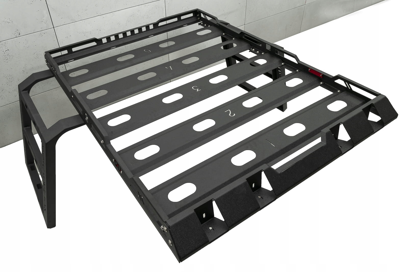 Ідеально підходить для даху Wrangler, ідеально підходить для транспортування додаткового багажу для експедицій, туристичного спорядження тощо. Дозволяє просто та швидко закріпити вантаж, що транспортується. Вбудована драбина полегшує прийняття більш зручного положення під час розміщення вантажу на даху, що значно покращує процес. Міцна, але легка конструкція багажника дозволяє перевозити до 100 кг вантажу. Спеціальна конструкція дозволяє встановити до 4 додаткових світлодіодних ламп.