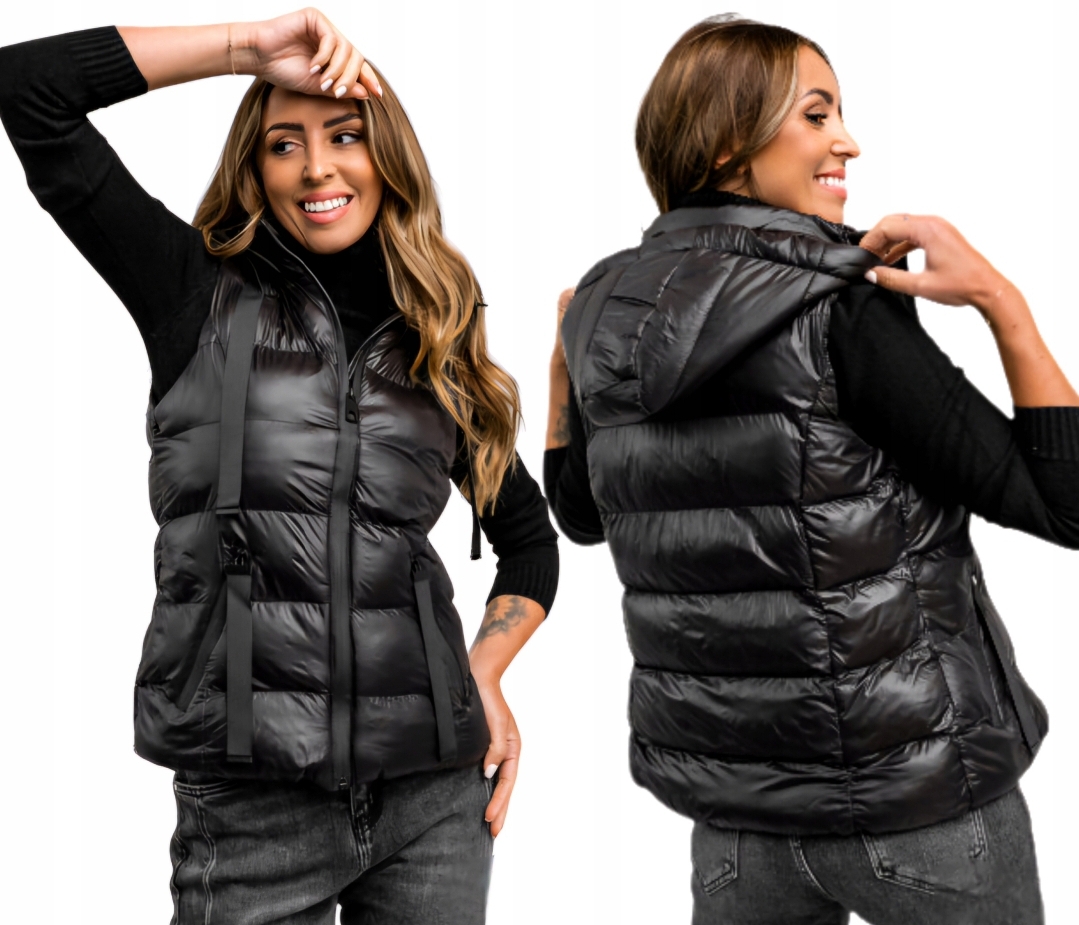 ЖІНОЧИЙ ВАТЯНИЙ ЖИЛЕТ З ОСТАННЬОЇ КОЛЕКЦІЇ, НА БЛИСКАВЦІ, З КАПЮШОНОМ, МОДНИЙ КВІЛТІНГ, ВИСОКИЙ СТАНДАРТНИЙ КОМІР ТА БІЧНІ КИШЕНІ НА БЛИСКАВЦІ.