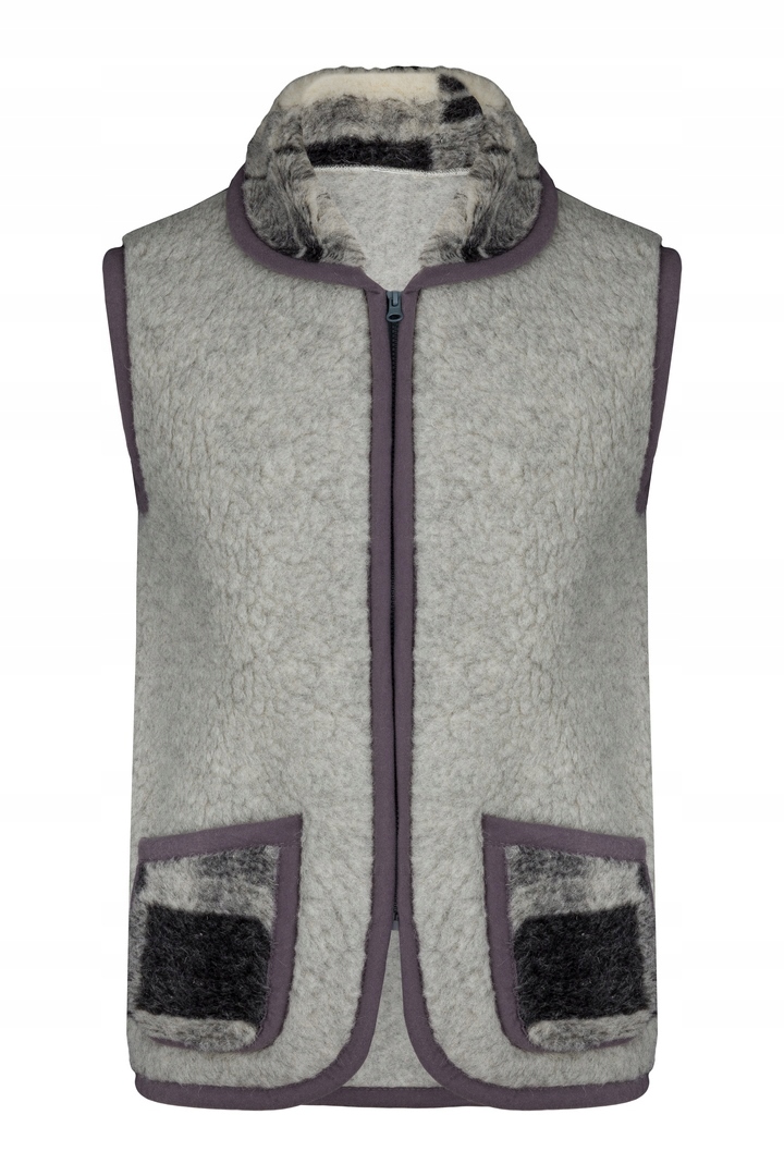 Високоякісна вовняна жилетка з коміром. Ідеально підходить на кожен день і пору року. Жилетка застібається на блискавку. Декоративний комір також може захистити шию в холодні дні. Завдяки універсальному крою, його можуть носити як жінки, так і чоловіки. Завдяки властивостям вовни тіло підтримує постійну температуру, що перетворюється на тепловий комфорт при щоденному використанні. Польський продукт, який гарантує повне задоволення.