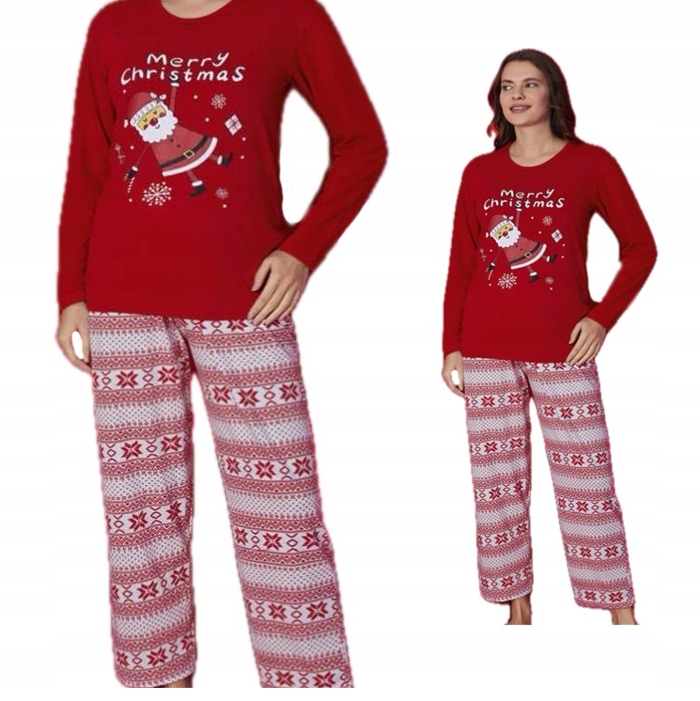 ЖІНОЧА РІЗДВОВА ПІЖАМА З БАВОВНИ, ДОВГИЙ РУКАВ, Санта Клаус, червона, XL