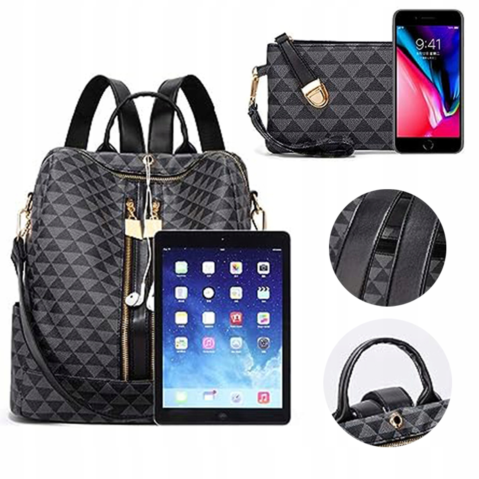 Жіноча рюкзака проти крадіжки сумочки. Висока ємність чорної сумки