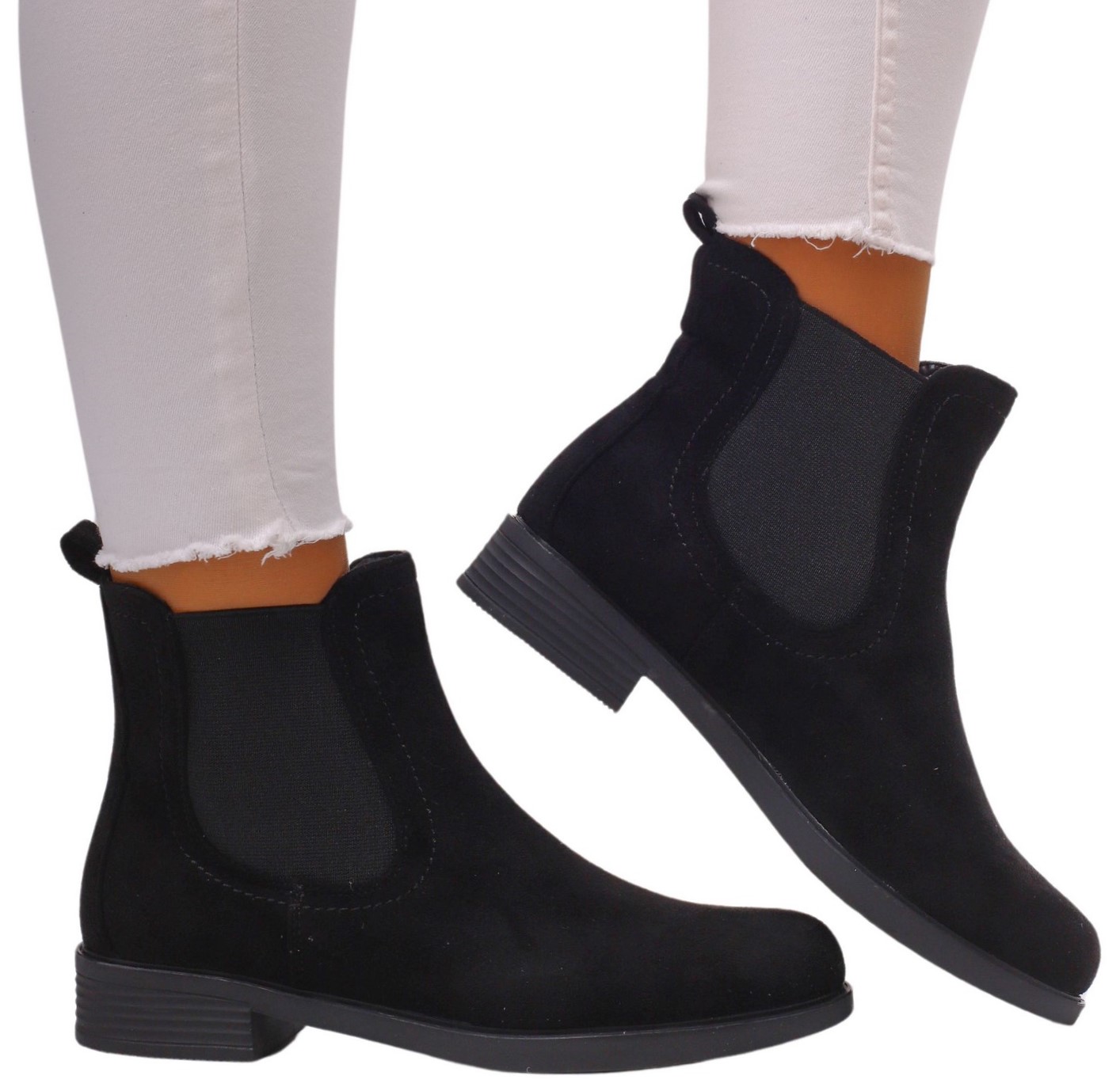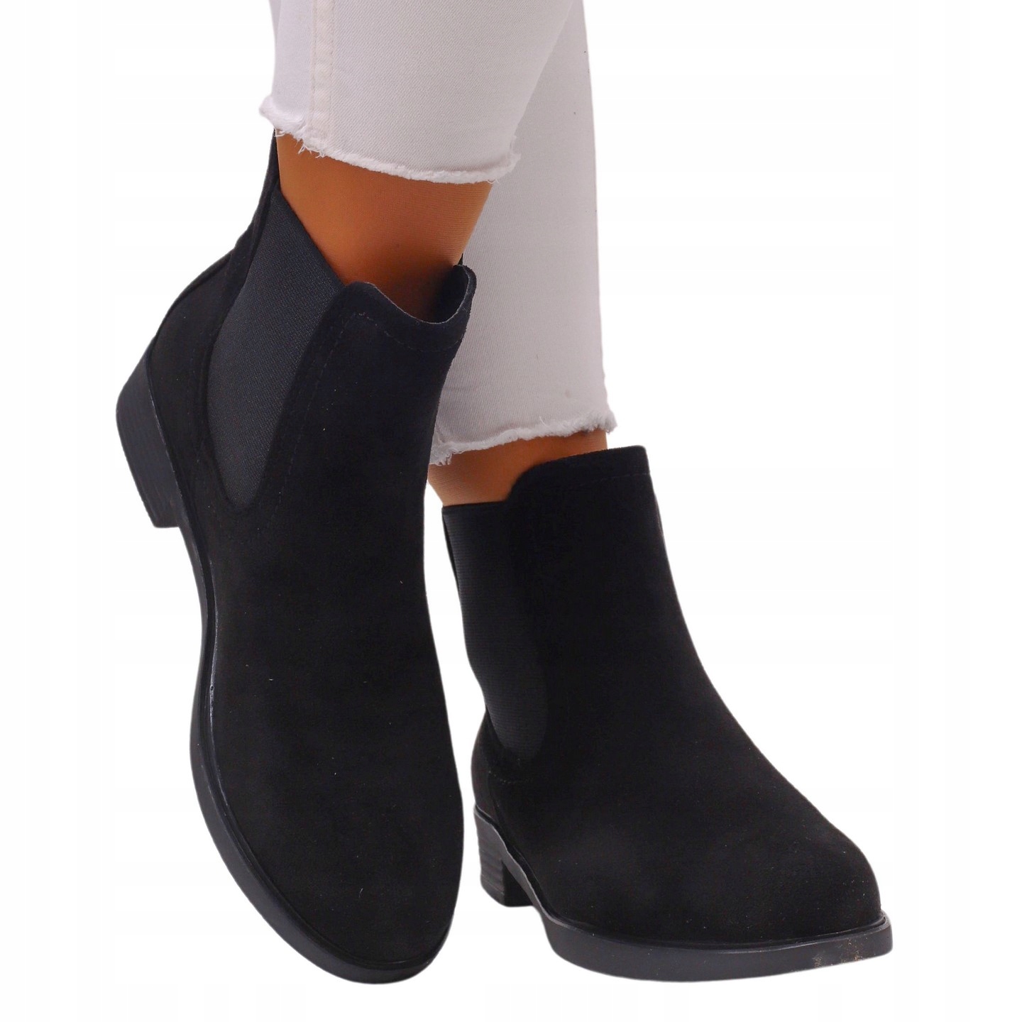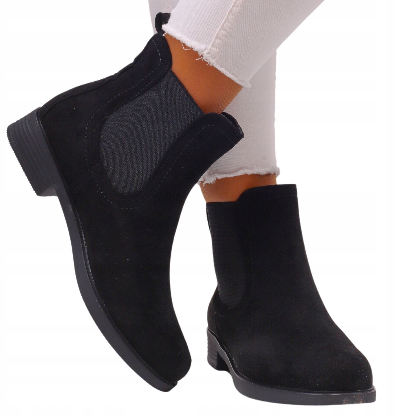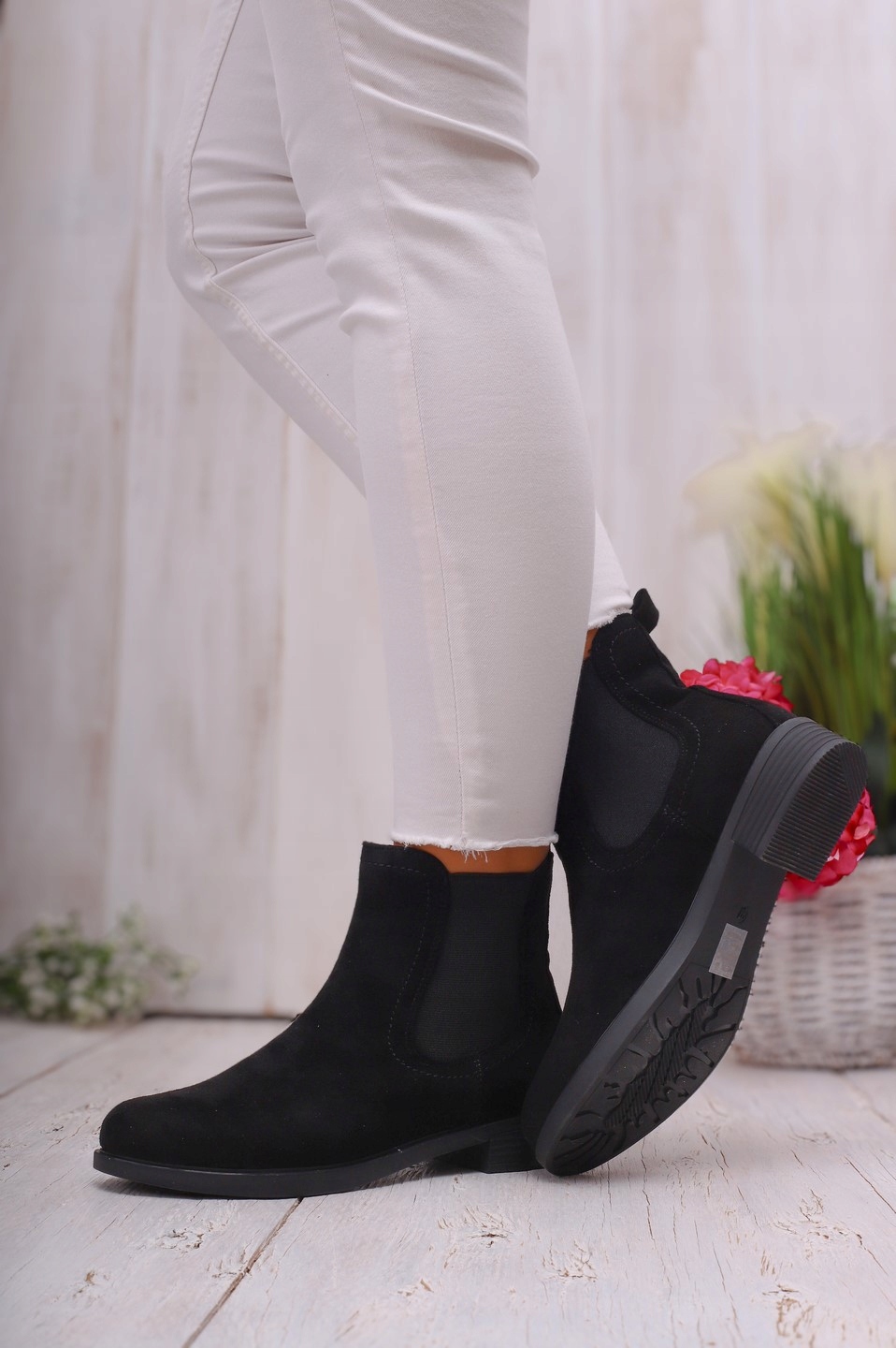 Жіночі ботильйони чорного кольору. Вони застібаються на блискавку, що полегшує їх надягання. Стійка, товста підошва добре амортизує стопу, виготовлена з якісних матеріалів. Завдяки простому дизайну вони поєднуються з багатьма стилями.