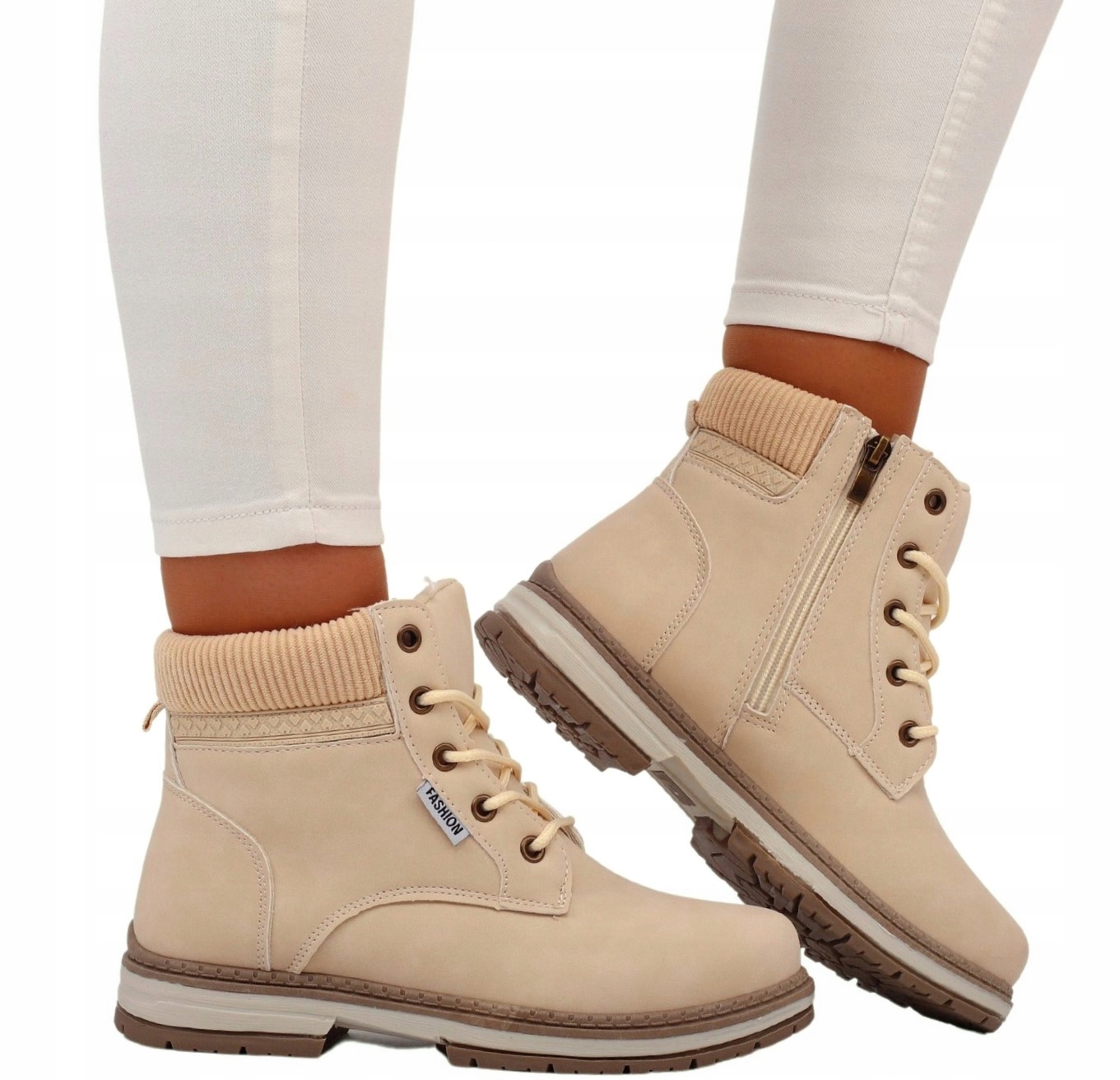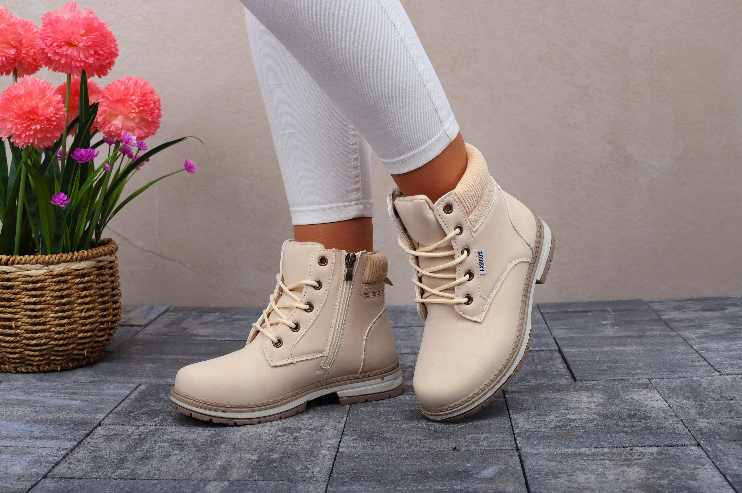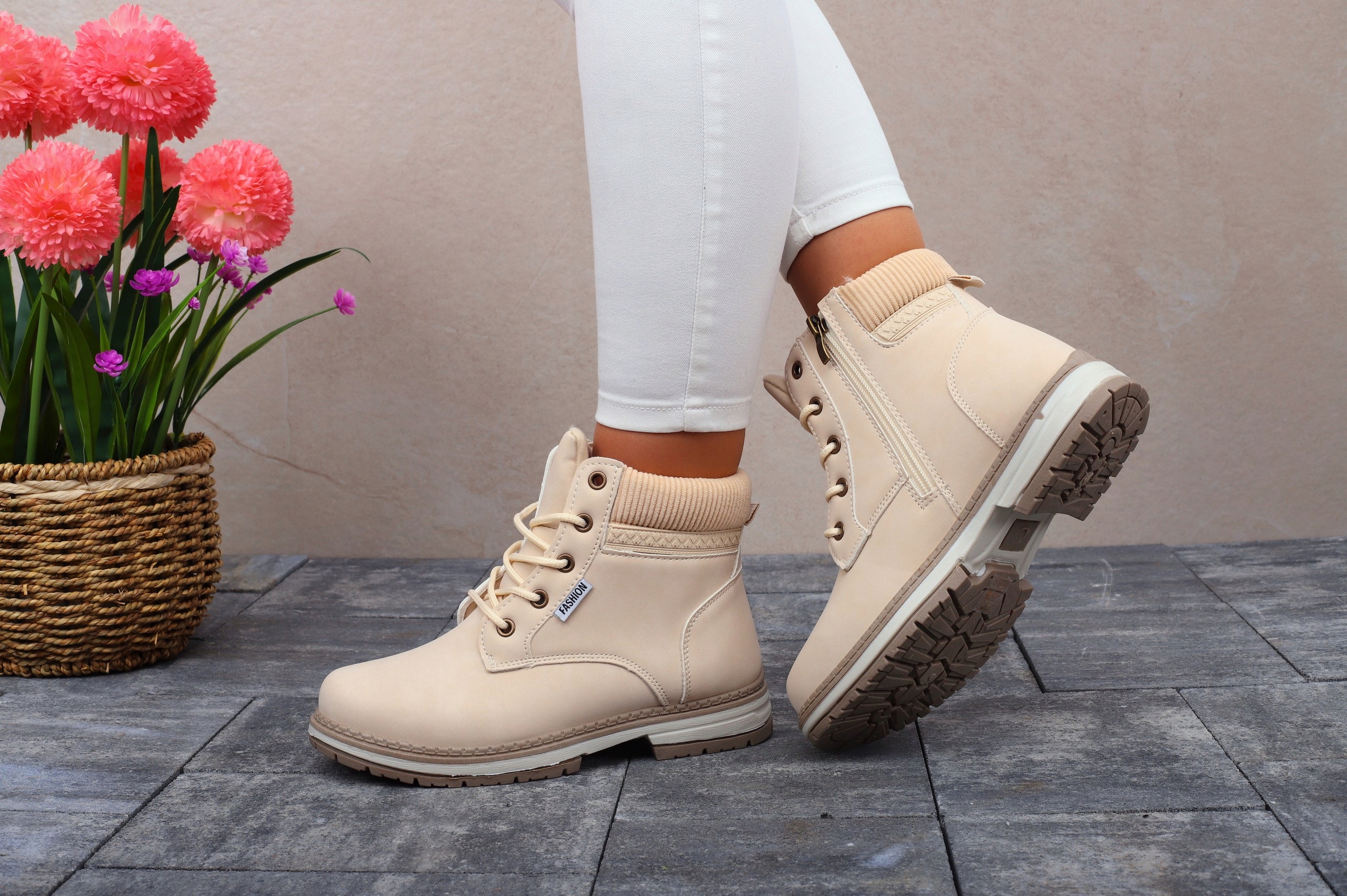 Черевики жіночі бежеві. Утеплені хутром - ідеальні для зими ❗ Застібаються на блискавку, що полегшує їх одягання. ❄ Стійка товста підошва добре амортизує стопу та захищає від холоду. Виготовлений з якісних матеріалів. Завдяки простому дизайну вони відповідають багатьом стилям.