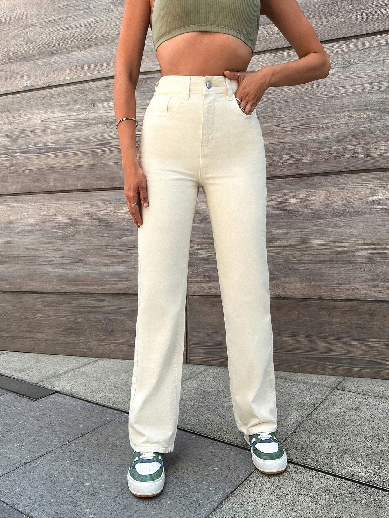 Жіночі джинси прості звичайні бежеві випадкові коттлайн M 38