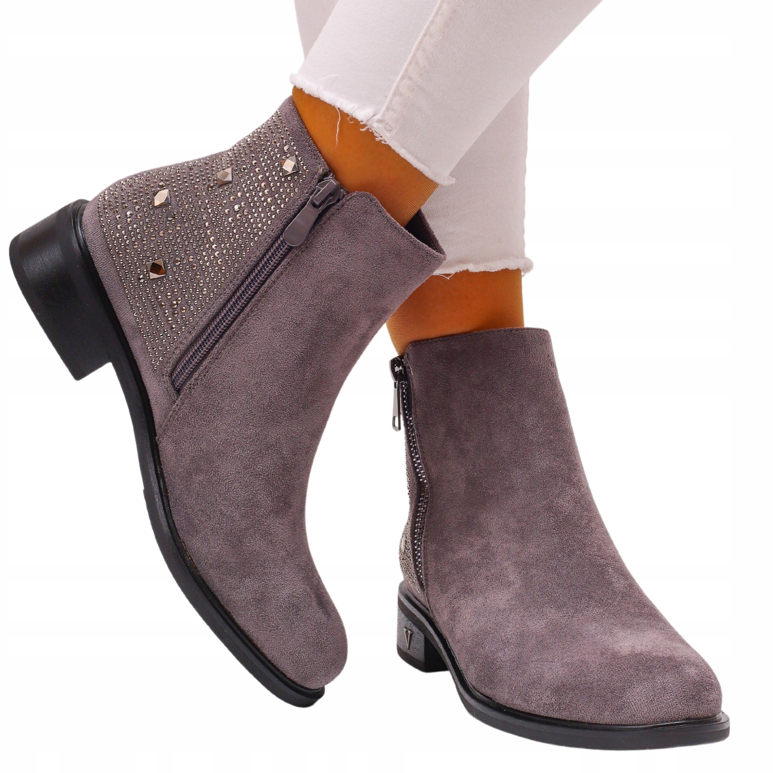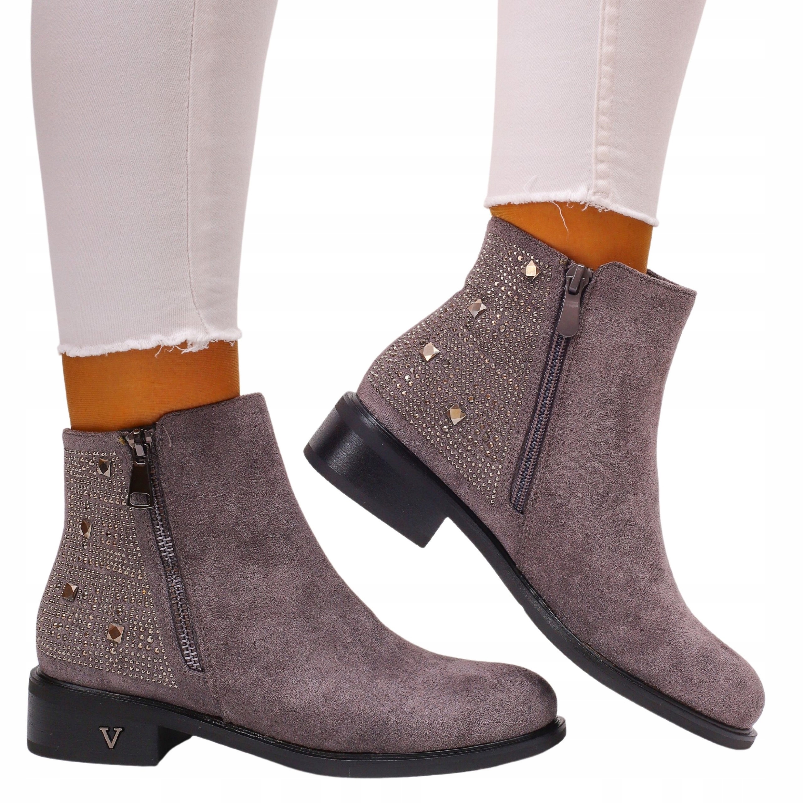 Більйони жіночі сірі. Вони застібаються на блискавку, що полегшує їх надягання. Стійка, товста підошва добре амортизує стопу, виготовлена з якісних матеріалів. Завдяки простому дизайну вони поєднуються з багатьма стилями.