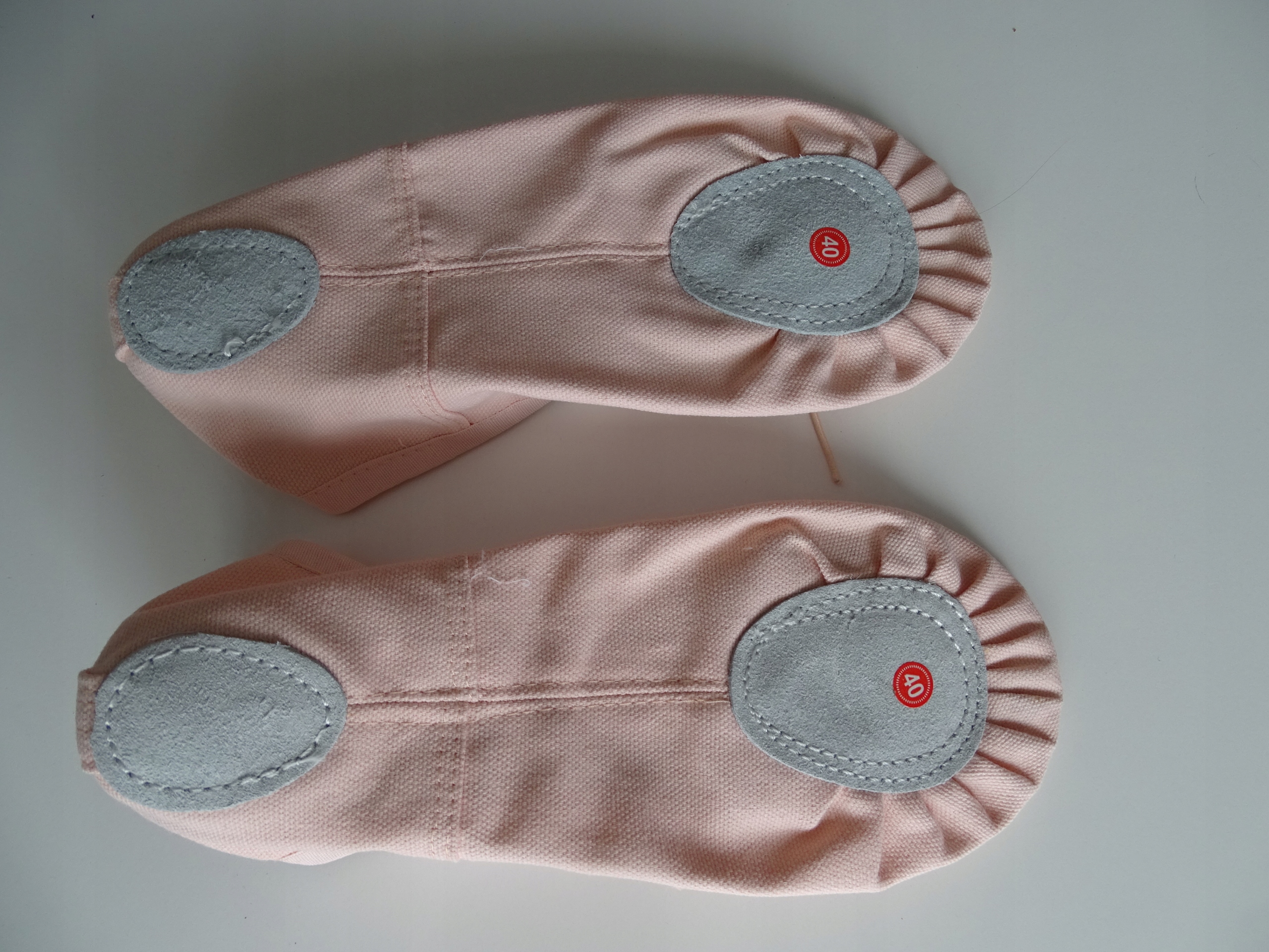 Баллетіни пришиті з рівномірної дихаючої тканини, двосторонньої підошви, підкріпленої натуральною шкірою.